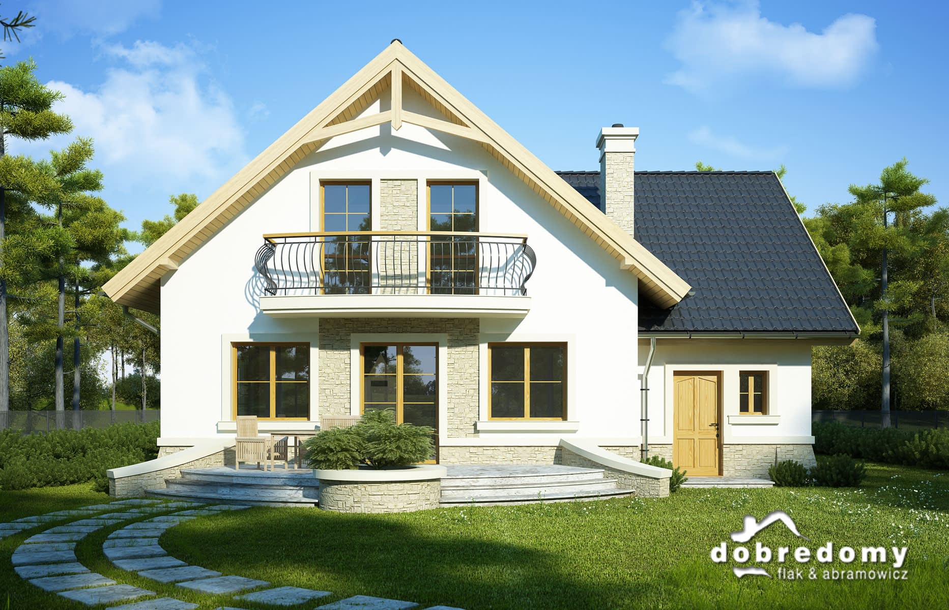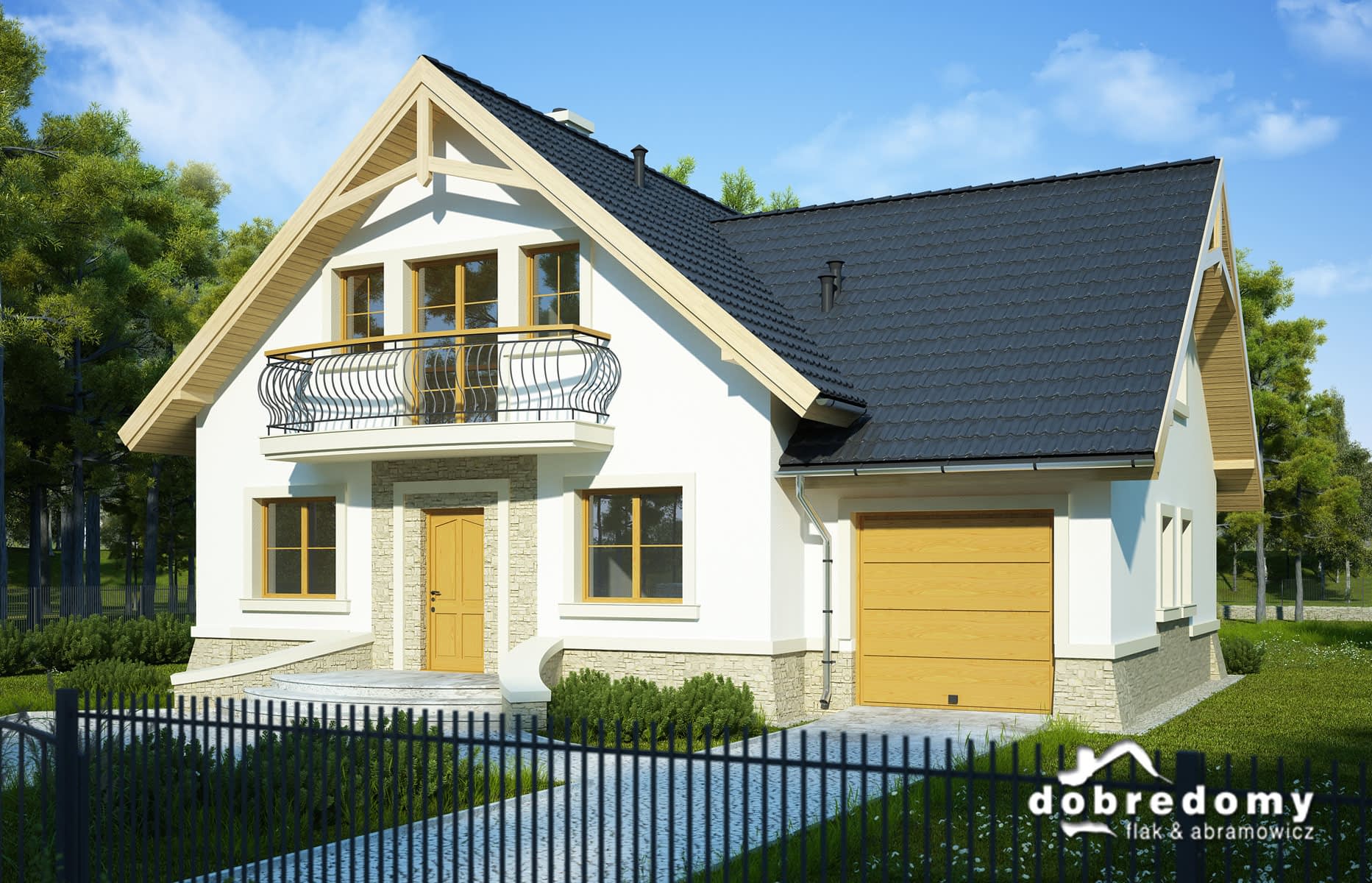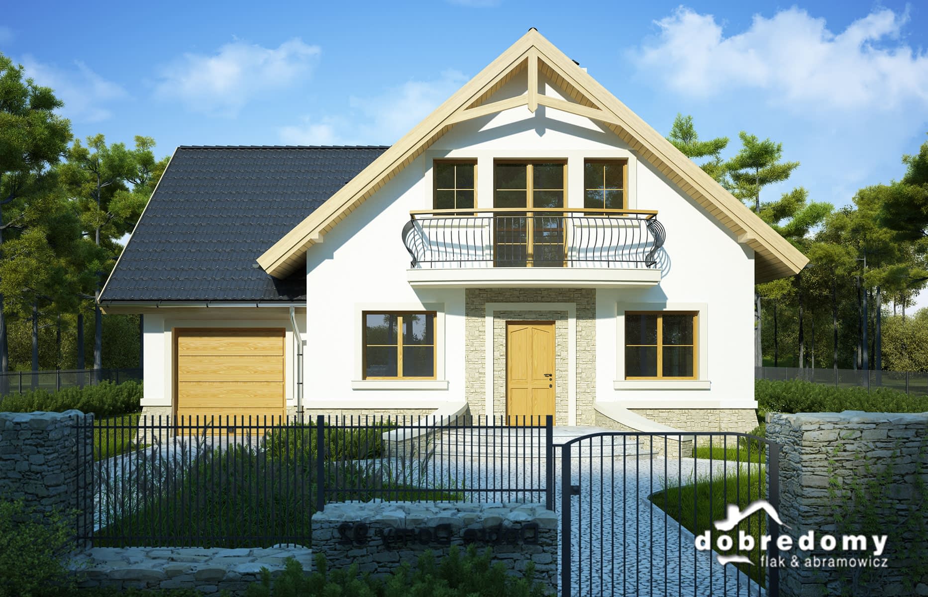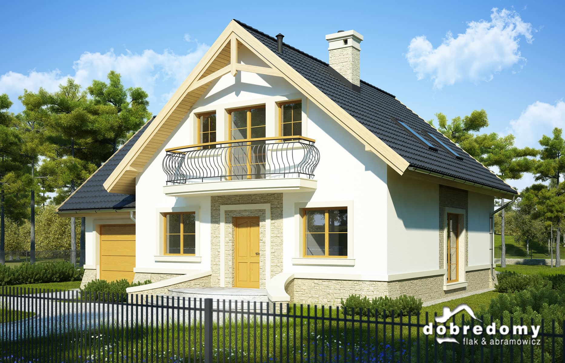 Dom z poddaszem użytkowym, zaprojektowany z myślą o 4-6-osobowej rodzinie.Na parterze zaplanowano pokój dzienny, przestrzennie połączony z jadalnią i kuchnią, spiżarnię, łazienkę, garderobę oraz pokój gościnny/gabinet. Pomieszczenie gospodarcze dostępne z jednostanowiskowego garażu. Poddasze to trzy sypialnie (w tym jedna z własną garderobą) , łazienka oraz strych, który można zaadaptować na dodatkowy pokój. Projekt może być wykorzystany do zabudowy bliźniaczej. Projekt dostępny w wersji z garażem dwustanowiskowym - Aureliusz II oraz bez garażu - Aureliusz III.
