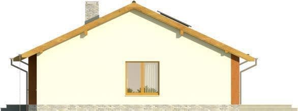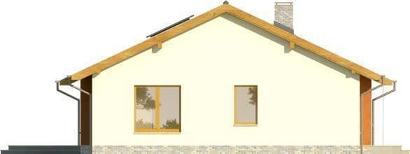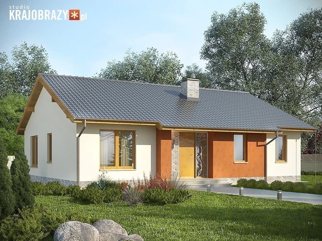 Awans to projekt parterowego domu jednorodzinnego z dachem dwuspadowym. Projekt ma prostą architekturę, jednak nie nudną, dzięki nieznacznemu wysunięciu fragmentów ścian oraz wyróżnieniu ich innym materiałem. Uwagę przykuwa atrakcyjny, lekki ażurowy panel przesłaniający częściowo przeszklenie w drzwiach. Domek dostępny jest także w wersji lustrzanej.Mimo niewielkiej powierzchni, w projekcie zmieściły się aż 3 sypialnie (w tym jedna z wydzieloną niewielką garderobą). Uwagę zwraca przestronny, ponad 35-metrowy salon z jadalnią, a wydaje się on tym większy, że połączony jest bezpośrednio z otwartą kuchnią. Pozostałe pomieszczenia to: łazienka, pomieszczenie gospodarcze dostępne z wiatrołapu oraz spiżarka przy kuchni.Rzuty
