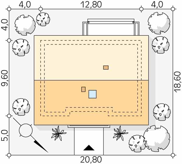 - Minimalne wymiary działki18.6 x 20.8m