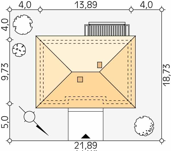- Minimalne wymiary działki18.73 x 21.89m