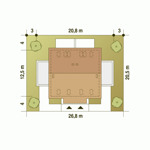 - Minimalne wymiary działki20.5 x 26.8m