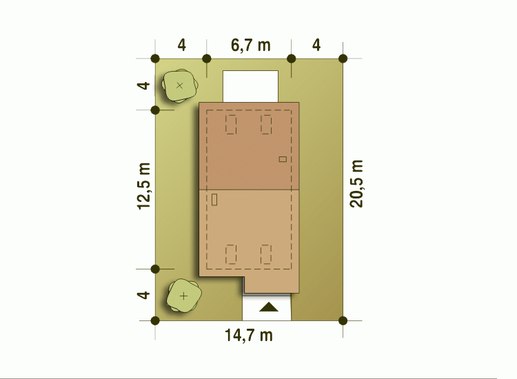 - Minimalne wymiary działki20.5 x 14.7m