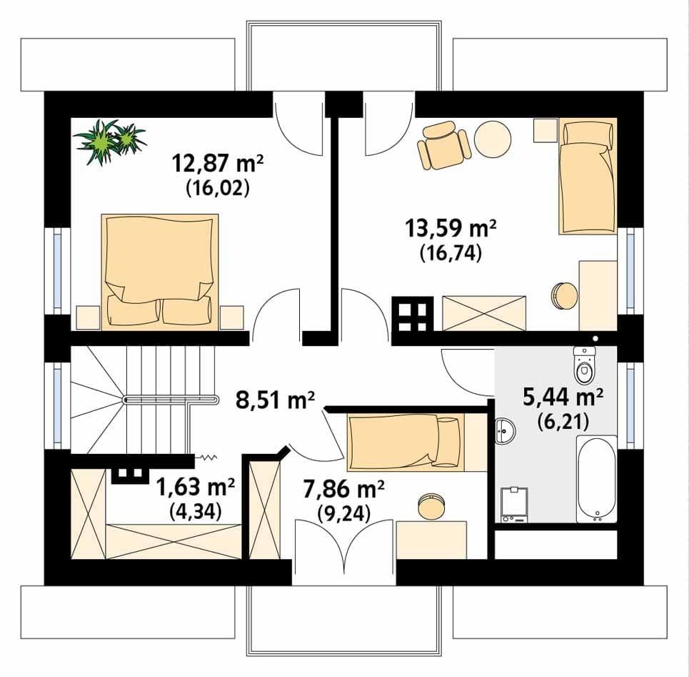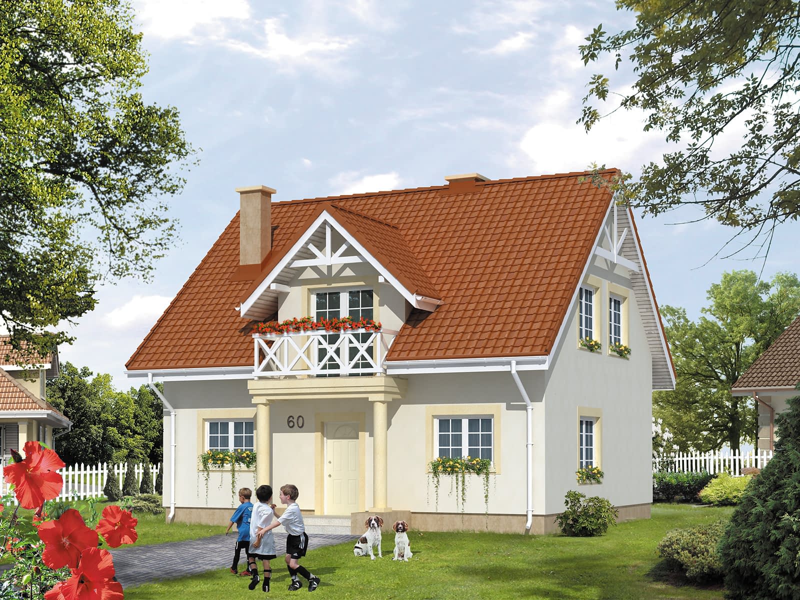 Dom jednorodzinny z poddaszem użytkowym o tradycyjnym wyglądzie. Na parterze zaprojektowano dodatkowy pokój. Na poddaszu znajdują się trzy sypialnie, łazienka i garderoba.Konstrukcja