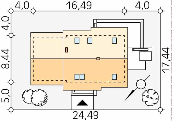 - Minimalne wymiary działki17.44 x 24.49m