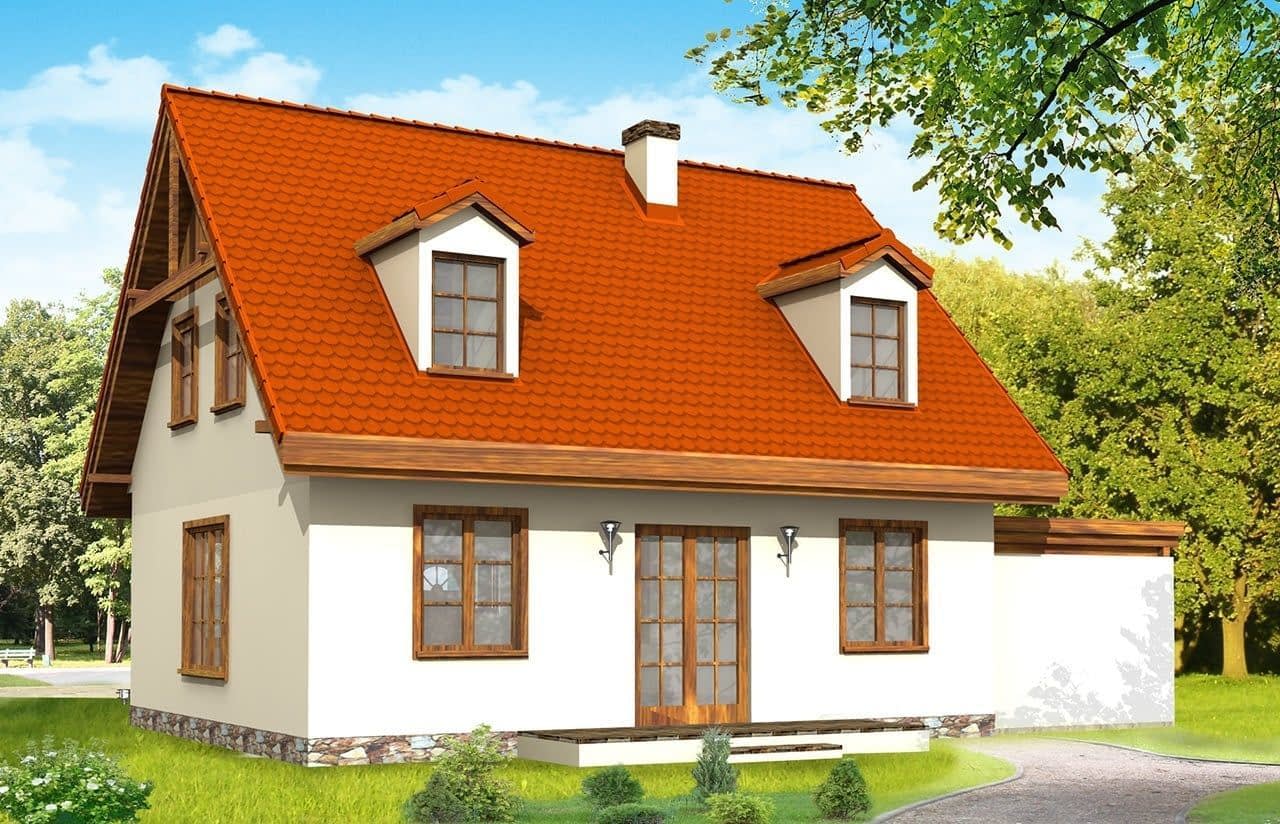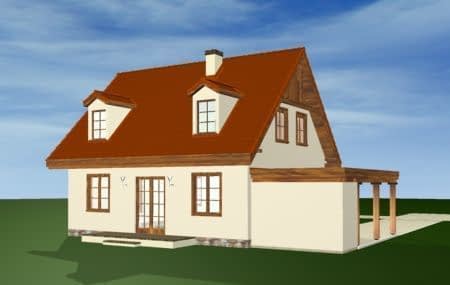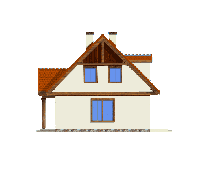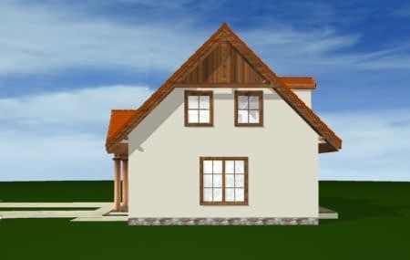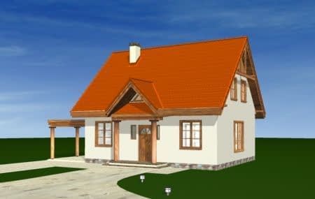 Projekt domu Bajkowy to propozycja dla 4-5 osobowej rodziny. Domek jest nieduży, ale spełnia wszystkie funkcje, którymi powinien charakteryzować się prawdziwy dom. Na parterze domu Bajkowy zaprojektowany został dodatkowy pokój, mogący spełniać funkcję gabinetu, sypialni babci lub pokoju gościnnego. Wiata opcjonalnie może być garażem. Zapraszamy do zapoznania się z pełną ofertą pracowni MG Projekt: podstawowy projekt domu Bajkowy, z podwójnym garażem, poszerzona wersja z garażem projekt domu Bajkowy 2, komfortowa wersja projekt domu Bajkowy 3, oraz odbicie lustrzane projektu.