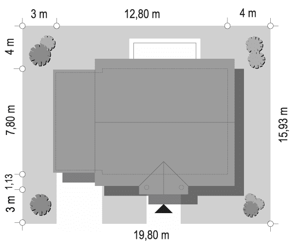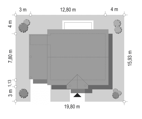 - Minimalne wymiary działki15.93 x 19.8m
