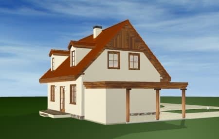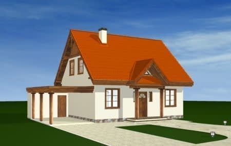 Projekt domu Bajkowy to propozycja dla 4-5 osobowej rodziny. Domek jest nieduży, ale spełnia wszystkie funkcje, którymi powinien charakteryzować się prawdziwy dom. Na parterze domu Bajkowy zaprojektowany został dodatkowy pokój, mogący spełniać funkcję gabinetu, sypialni babci lub pokoju gościnnego. Wiata opcjonalnie może być garażem. Zapraszamy do zapoznania się z pełną ofertą pracowni MG Projekt: podstawowy projekt domu Bajkowy, z podwójnym garażem, poszerzona wersja z garażem projekt domu Bajkowy 2, komfortowa wersja projekt domu Bajkowy 3, oraz odbicie lustrzane projektu.