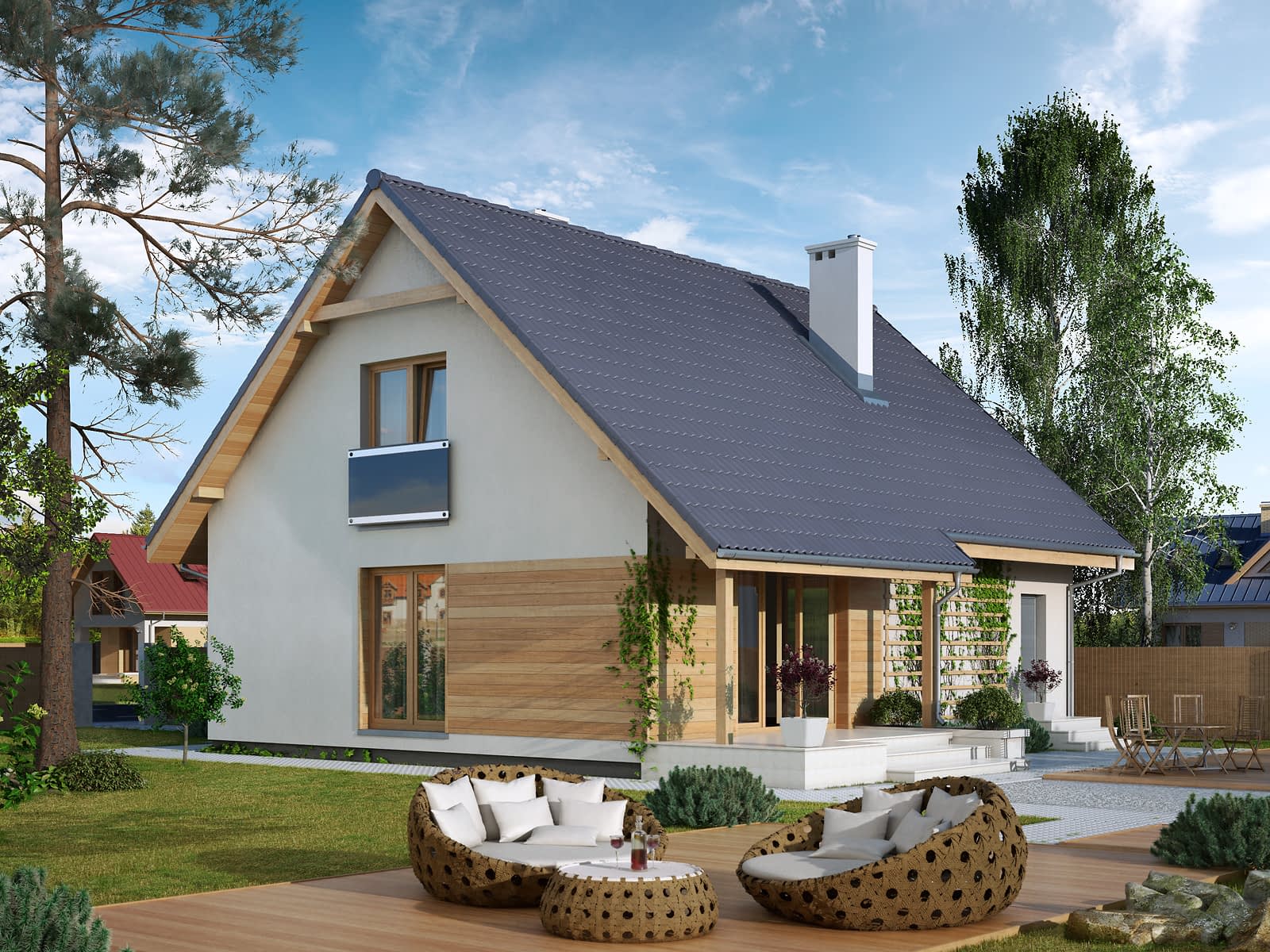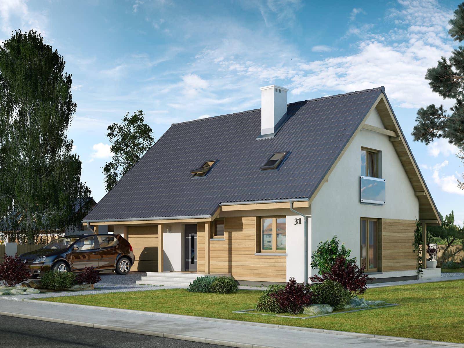 Balbinka 2 to tradycyjny dom zaprojektowany z myślą o 4-osobowej rodzinie. Jest to dom energooszczędny charakteryzujący się zwartą bryłą, w której mieści się jednostanowiskowy garaż i kotłownia usytuowana tuż za nim. Balibinka 2 to dom prosty i funkcjonalny, co z pewnością umożliwi wybudowanie go w ramach rozsądnych środków. W bryle budynku nie zastosowano elementów, które mogłyby podwyższać koszty budowy, typu: wykusz, lukarna, balkony, rozbudowane tarasy. W założeniu projekt Balbinka 2 ma być prosty i tani w realizacji. Na parterze w części dziennej znajdują się: salon z jadalnią, kuchnia, spiżarnia oraz wc; w części gospodarczej: garaż oraz kotłownia. Na poddaszu zaprojektowano trzy sypialnie, w tym jedną z garderobą, oraz łazienkę.Konstrukcja