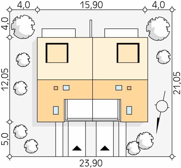 - Minimalne wymiary działki21.05 x 23.9m