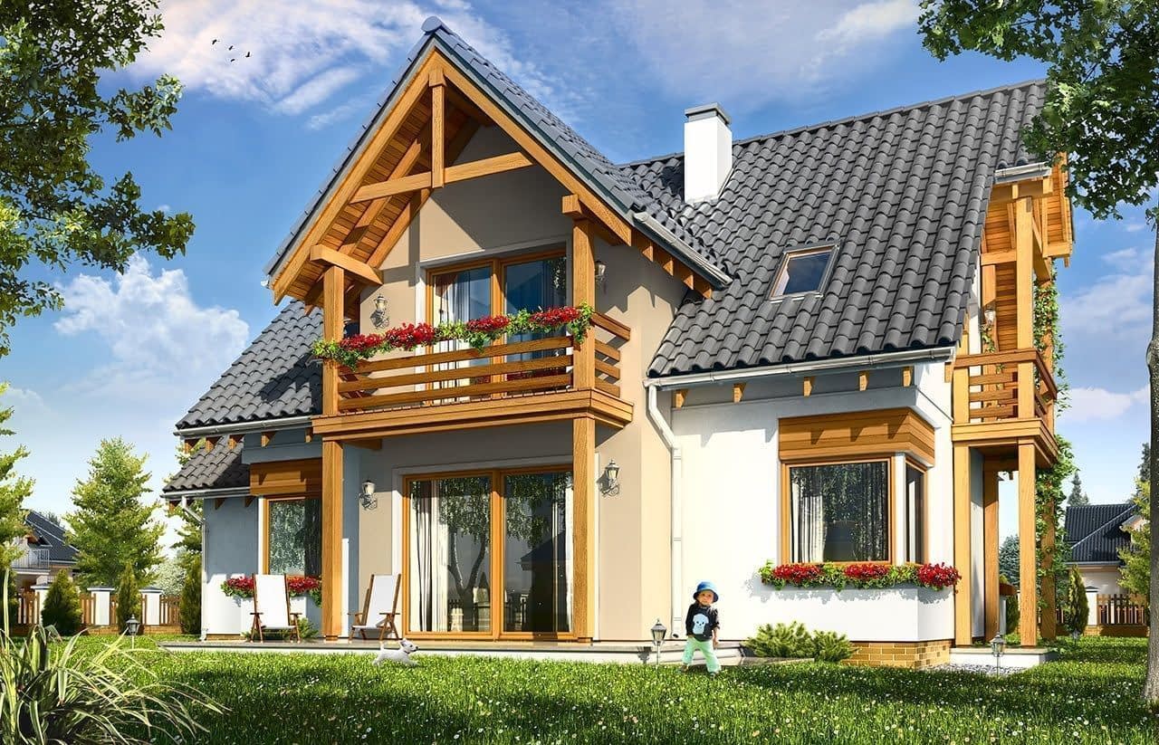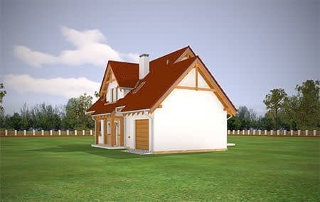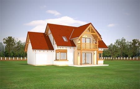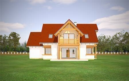 Projekt domu Bartek to dom jednorodzinny dla 4-5 osobowej rodziny, o ciekawej architekturze, wzorowanej na regionalnych tradycjach. Idealny dla Inwestorów znudzonych typowymi nawiązaniami do polskich dachowców z kolumienkami, szukającymi innej stylistyki.Budynek jednorodzinny z pojedynczym garażem.Projekt domku Bartek architektura i wnętrzeGotowy projekt Bartek to prosta bryła z poddaszem użytkowym, przykryta dwuspadowym dachem, z dobudowanym garażem. Dom ozdabiają od frontu i od ogrodu duże lukarny z ciekawymi drewnianymi detalami. Również szczyt projektu Bartek został ozdobiony ciekawie zaprojektowanym balkonem z daszkiem. W projekcie Bartek nawiązanie do tradycji łączy się z nowoczesnością. Narożne okna projektu Bartek, czy duże przeszklone drzwi na taras dodają nowoczesnego sznytu.Wnętrze projektu Bartek zaplanowano wokół centralnie ustawionych schodów. W projekcie domku Bartek z holu przechodzimy do przestrzeni dziennej składającej się z kącików: telewizyjnego, kominkowego i jadalni. Razem z holem i częściowo otwartą kuchnią salon tworzy bardzo ładną wspólną powierzchnię. Na parterze projektu Bartek mieści się też kotłownia, łazienka, dodatkowy pokój i dobudowany garaż. Na poddaszu projektu Bartek znajdują się trzy sypialnie, duża łazienka, garderoba rodziców i dodatkowy niewielki pokój do pracy.Projekt Bartek dzięki zwartości bryły i zastosowanym materiałom jest energooszczędny. Bartek będzie niedrogi w budowie i późniejszej eksploatacji. Koszt budowy domu Bartek to 154645 zł za stan surowy zamknięty. Dom można zbudować na działce o wymiarach: szerokość min 22,05 m i długość min 18,40 m. Projekt Bartek z pracowni MGProjekt można zamówić też w wersji odbicia lustrzanego.