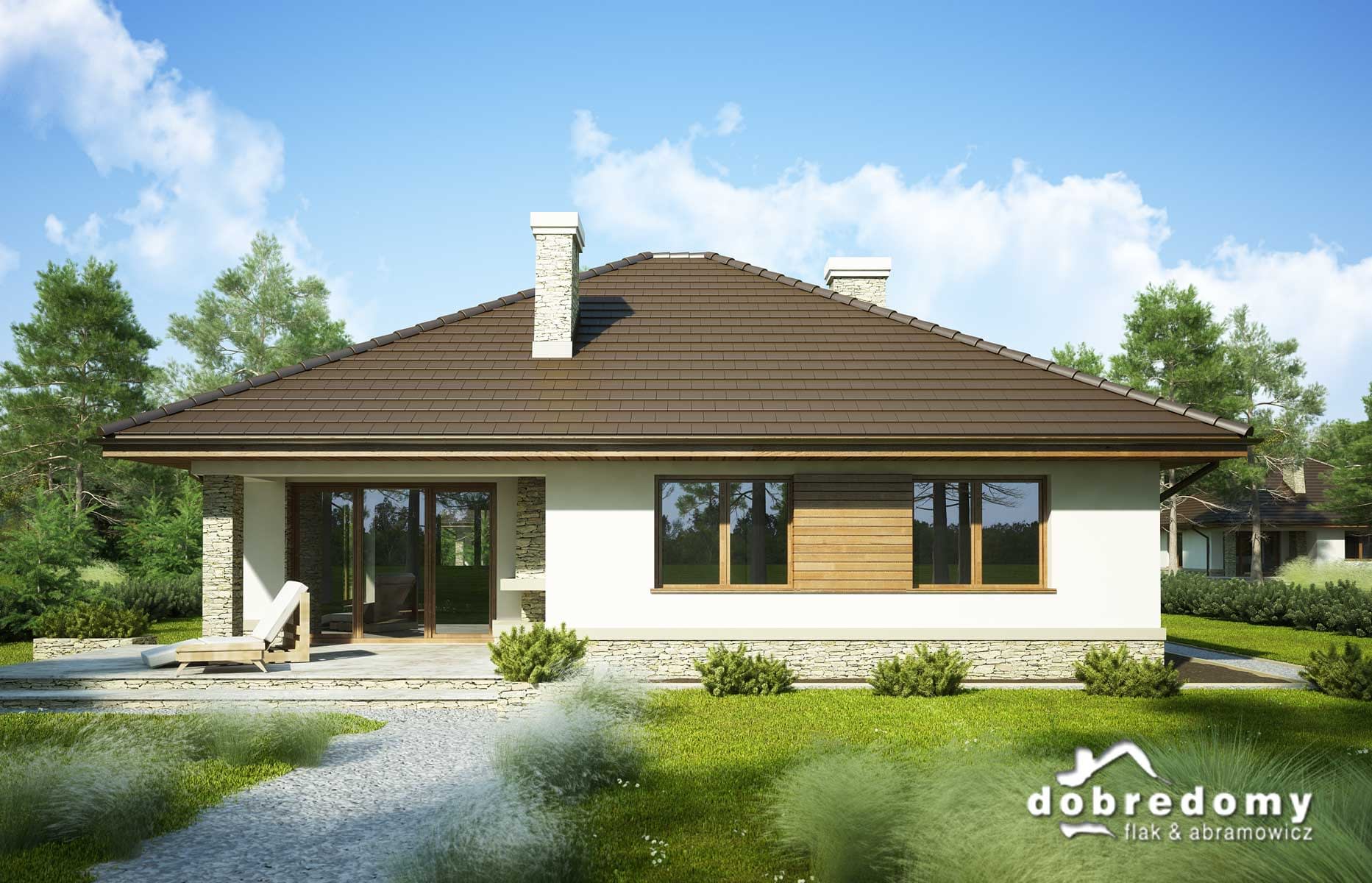 Elewacje pokryte tynkiem strukturalnym w systemie ociepleń Termo Organika oraz okładziną kamienną i drewnianą. Pokrycie dachu - dachówka ceramiczna lub cementowa CREATON.