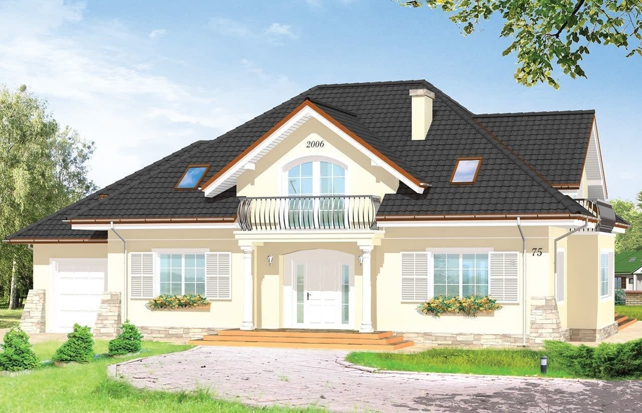 Projekt domu Benedykt 3 jest wariantową wersją domu Benedykt. Jest to wygodny dom jednorodzinny, zaprojektowany na planie prostokąta, przekryty wielospadowym dachem z lukarnami. W domu może zamieszkać rodzina 4-6 osobowa. Na parterze oprócz salonu z jadalnią zaprojektowano dodatkowy pokój i dużą kotłownię - pralnię. Z salonu wychodzi się na taras przez szerokie przeszklenie i przez zaciszny podcień. Na poddaszu zaplanowano trzy sypialnie, w tym jedna z własną łazienką i garderobą, dodatkowy pokój, mogący być np. sypialnią gościnną oraz pokój nad garażem. Pracownia posiada także wersję projektu Benedykt 3 w odbiciu lustrzanym. Zapraszamy do zapoznania się z pełną ofertą pracowni MG Projekt: projekt domu Benedykt, projekt domu Benedykt 2, projekt domu Benedykt 3, projekt domu Benedykt 4, projekt domu Benedykt 5, projekt domu Benedykt Bliźniak.