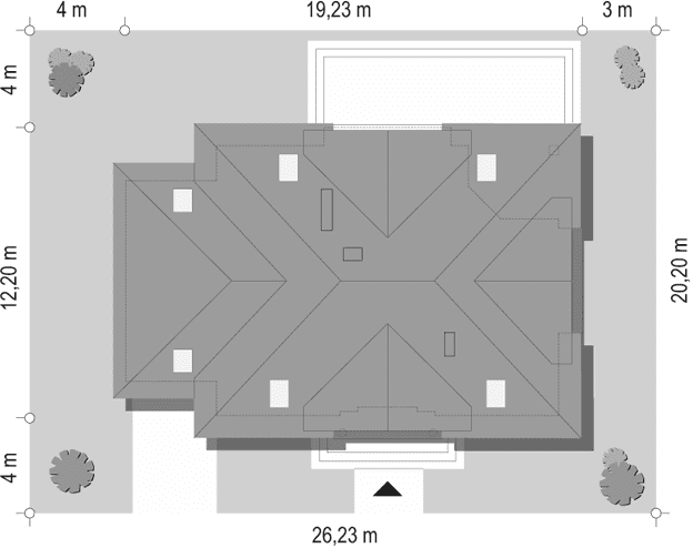 - Minimalne wymiary działki20.2 x 26.23m