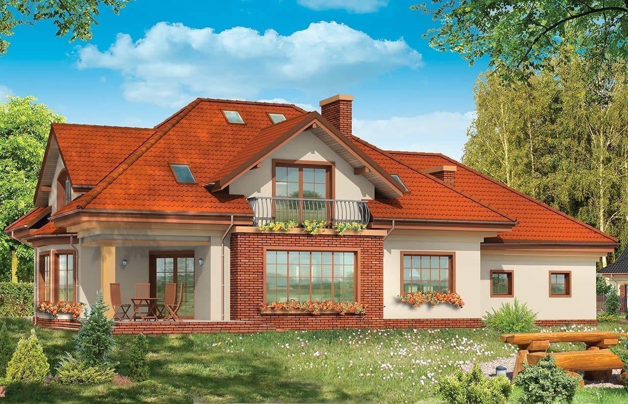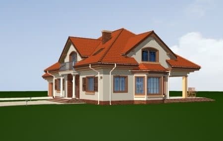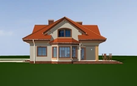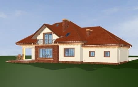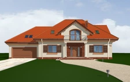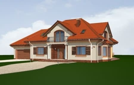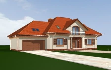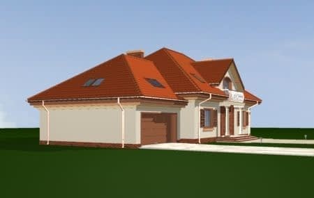Projekt domu Benedykt 5 to kolejna odsłona popularnego projektu Benedykt. Od wersji podstawowej projektu różni się podwójnym garażem, trzema lukarnami na poddaszu, wychodzącymi na każdą stronę budynku, oraz dodatkowo: wejściem kolumnowym z balkonikiem, oraz wykuszem w jadalni. W projekcie Benedykt 5, dzięki powiększeniu części garażowej i przeniesieniu kotłowni uzyskano dodatkowy pokój na parterze. Na poddaszu, nad garażem zaprojektowano dużą część rekreacyjną. Poddasze jest większe, niż w wersji podstawowej projektu, dzięki zwiększeniu wysokości ścian kolankowych. Pracownia posiada również odbicie lustrzane projektu Benedykt 5. Zapraszamy do zapoznania się z pełną ofertą pracowni MG Projekt: projekt domu Benedykt, projekt domu Benedykt 2, projekt domu Benedykt 3, projekt domu Benedykt 4, projekt domu Benedykt 5, projekt domu Benedykt Bliźniak.