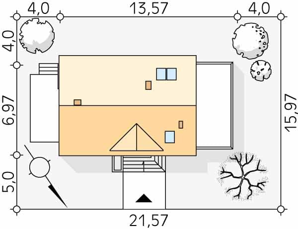 - Minimalne wymiary działki15.97 x 21.57m