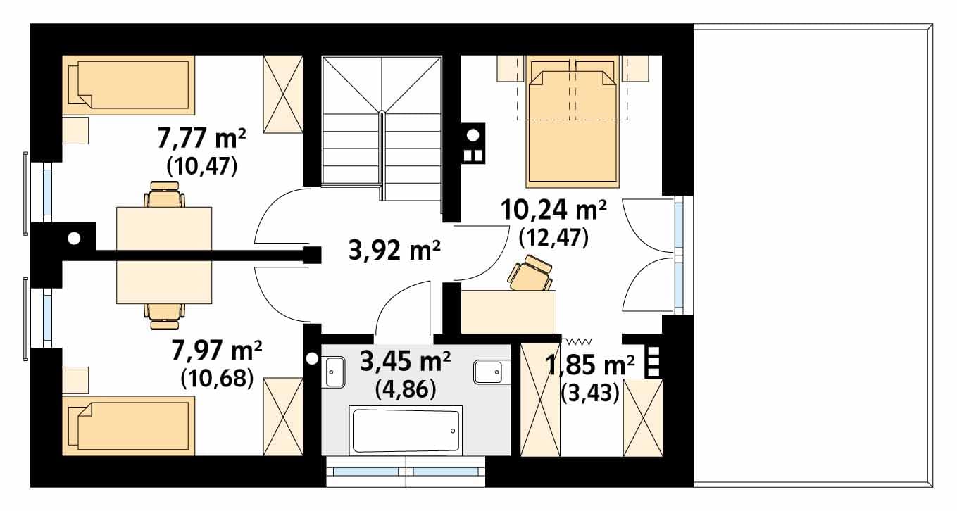 - rzuty poziome poszczególnych kondygnacji (parter, poddasze lub piętro),