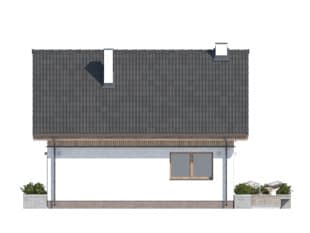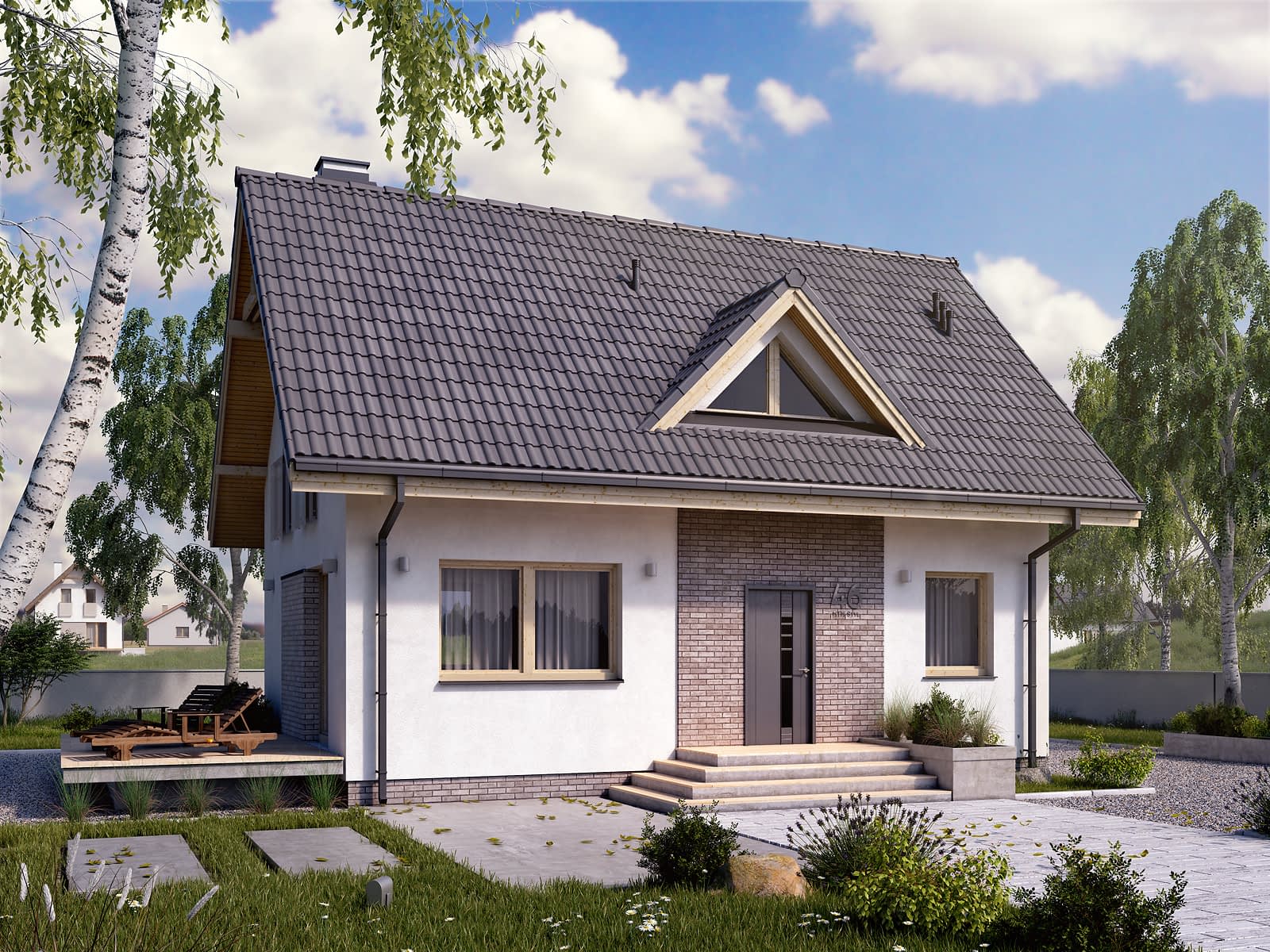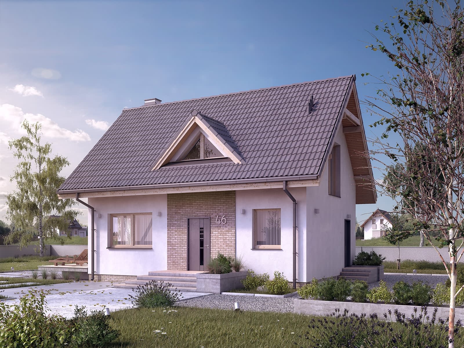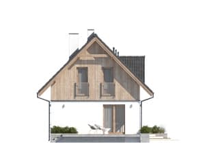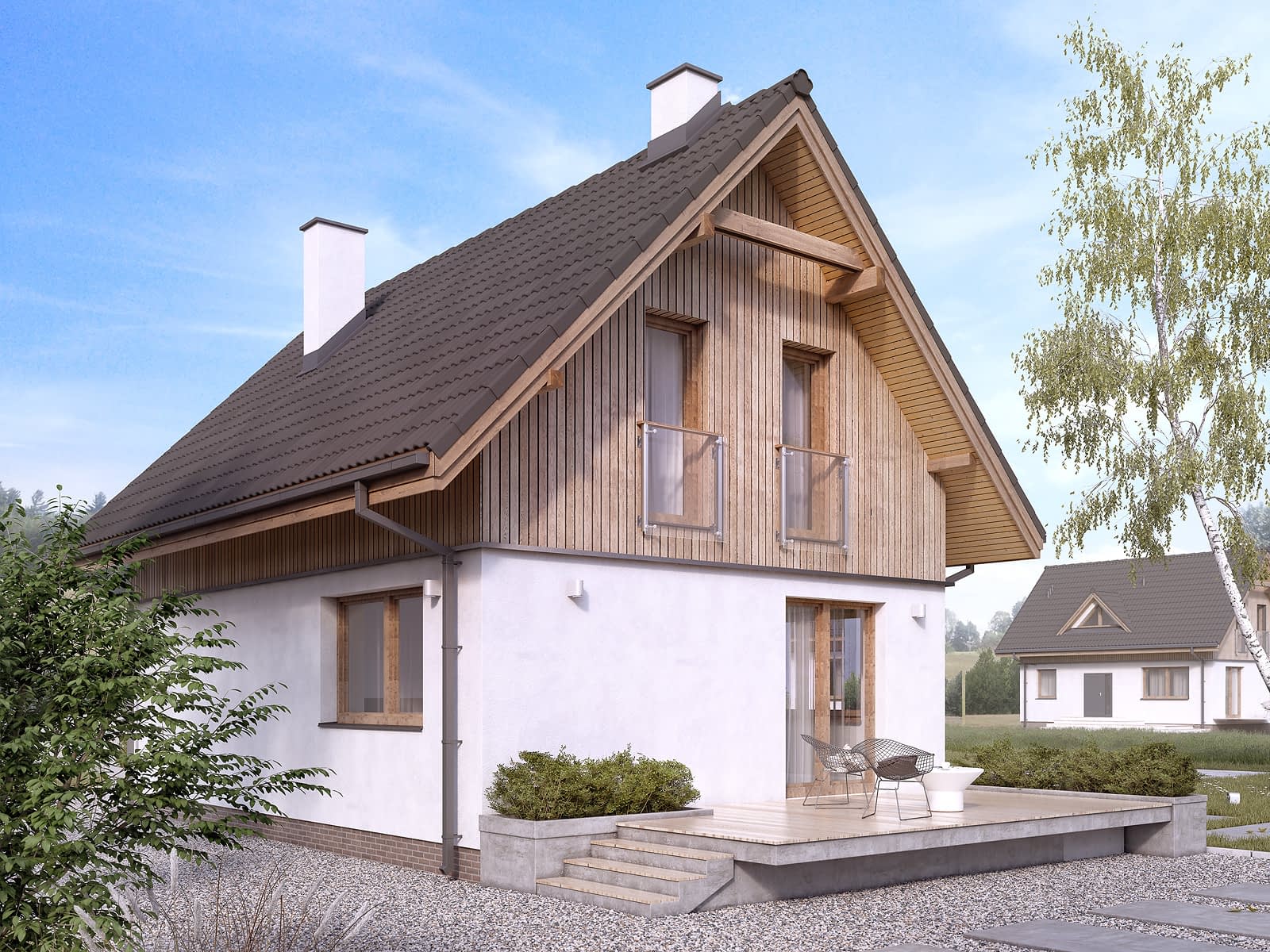 Bez DR-T to projekt popularnego domu z poddaszem, dostosowany do technologii szkieletowej. Optymalne wykorzystanie przestrzeni zapewnia wygodne warunki mieszkaniowe dla 4 osobowej rodziny. Dzięki niewielkim rozmiarom i przyjętym rozwiązaniom projektowym budynek jest ekonomiczny w budowie i użytkowaniu. Na poddaszu znajduje się strefa prywatna, podczas gdy parter przeznaczono na strefę dzienną Walory użytkowe kuchni podnosi spiżarnia.Konstrukcja