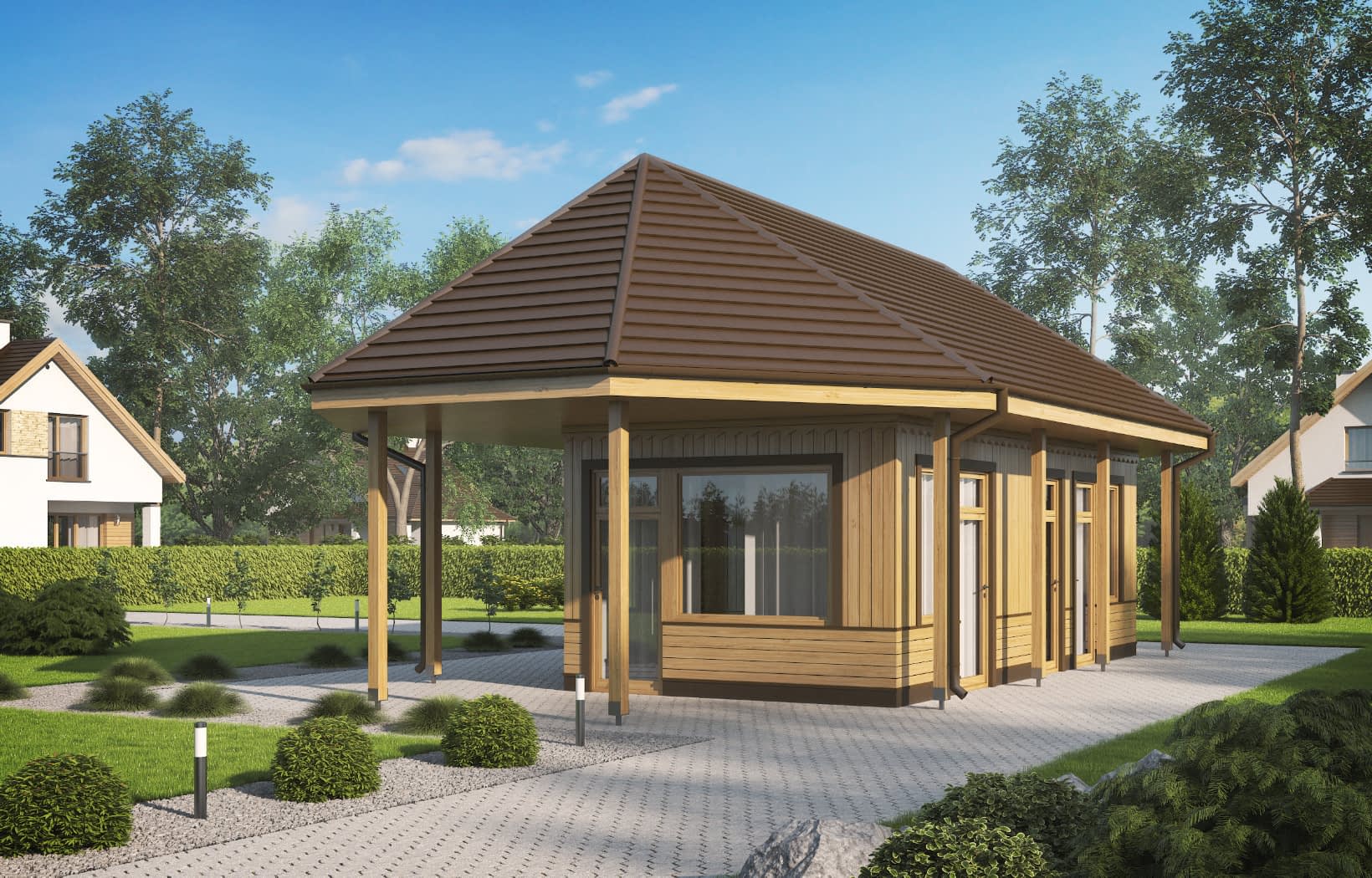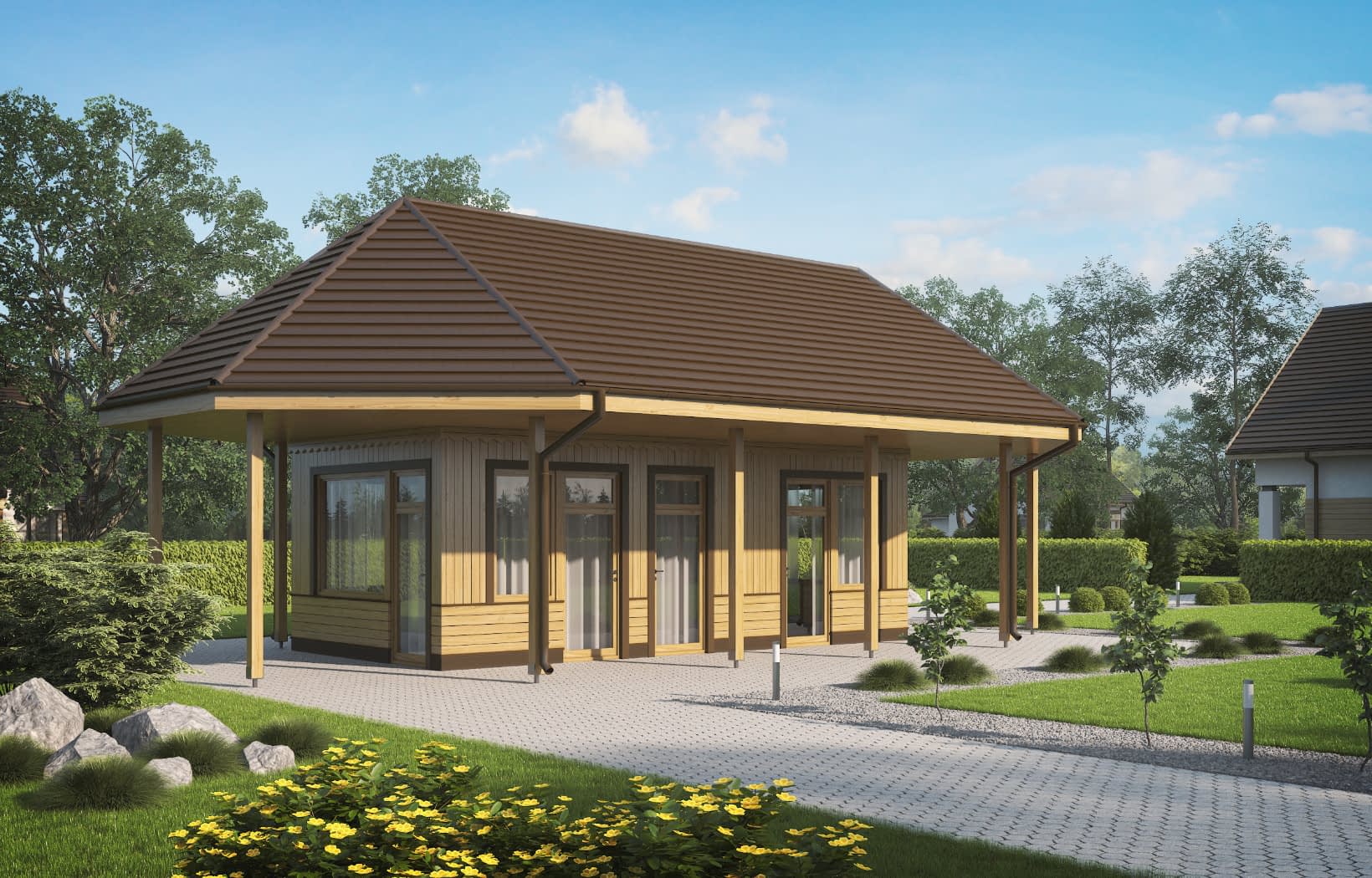 - elewacje (frontowa, dwie elewacje boczne, ogrodowa) – dokładny wygląd domu z każdej strony.
