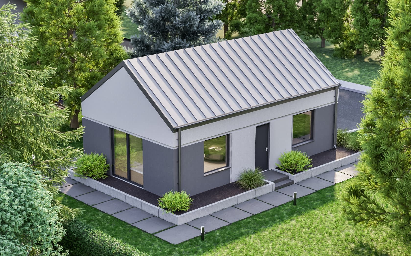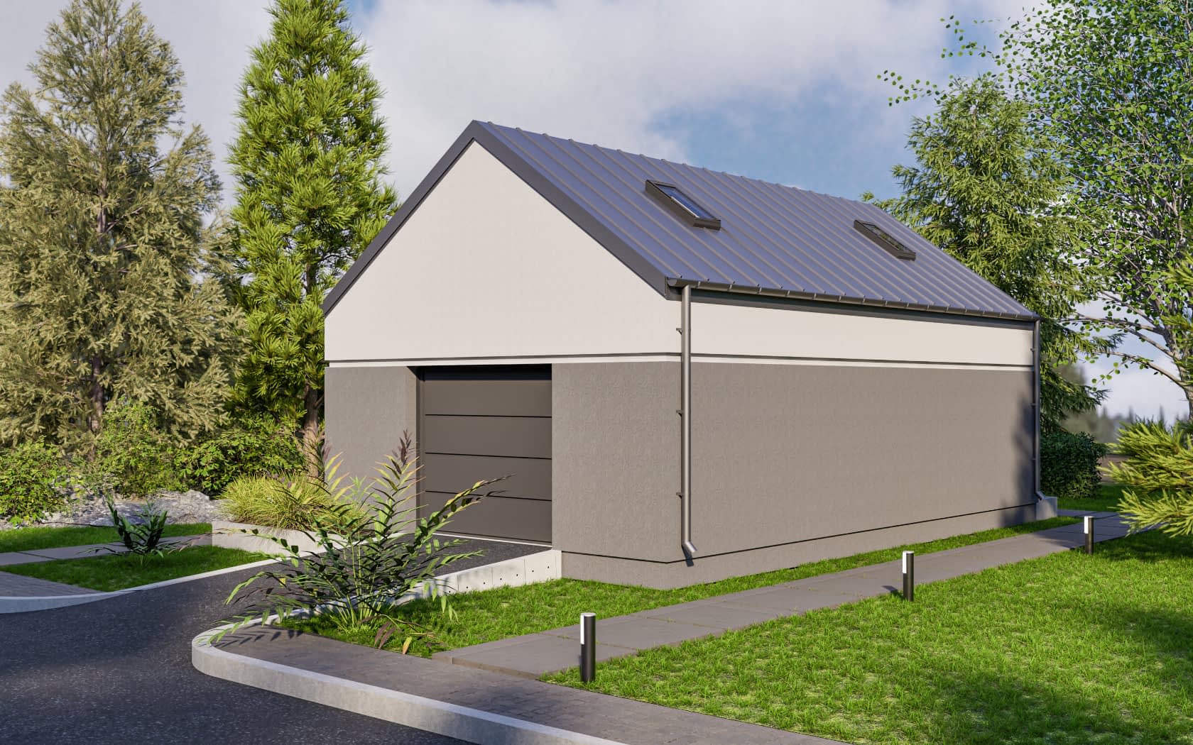 BG11 nowoczesny budynek gospodarczy z garażem jednostanowiskowym, w konstrukcji stalowej.Konstrukcja