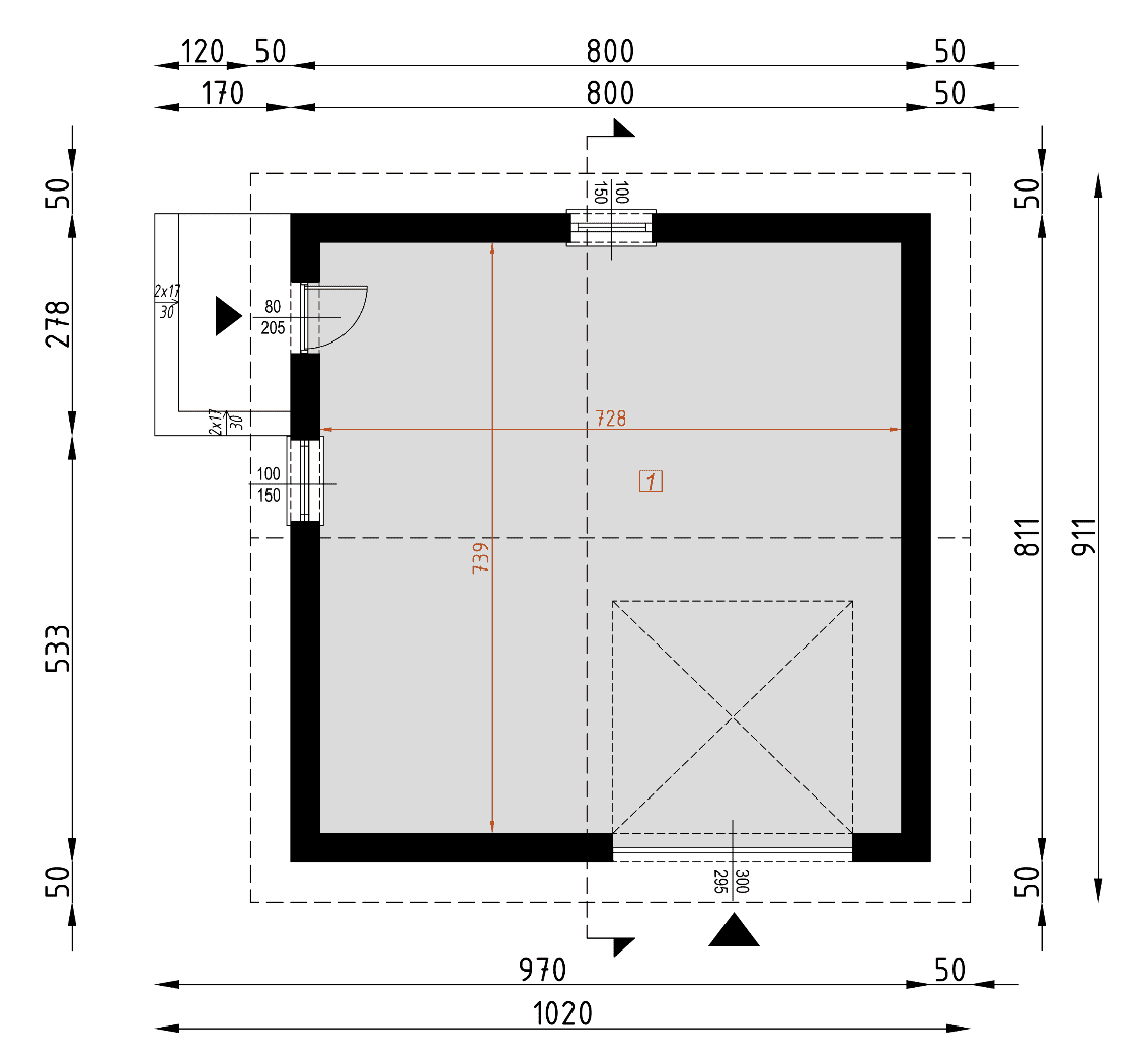 - rzuty wszystkich kondygnacji (np. parter, piwnica, piętro) – rozmieszczenie i wymiary wszystkich pomieszczeń, rozmieszczenie i wielkość otworów okiennych i drzwiowych, rozmieszczenie kominów, sugerowana aranżacja wnętrz.