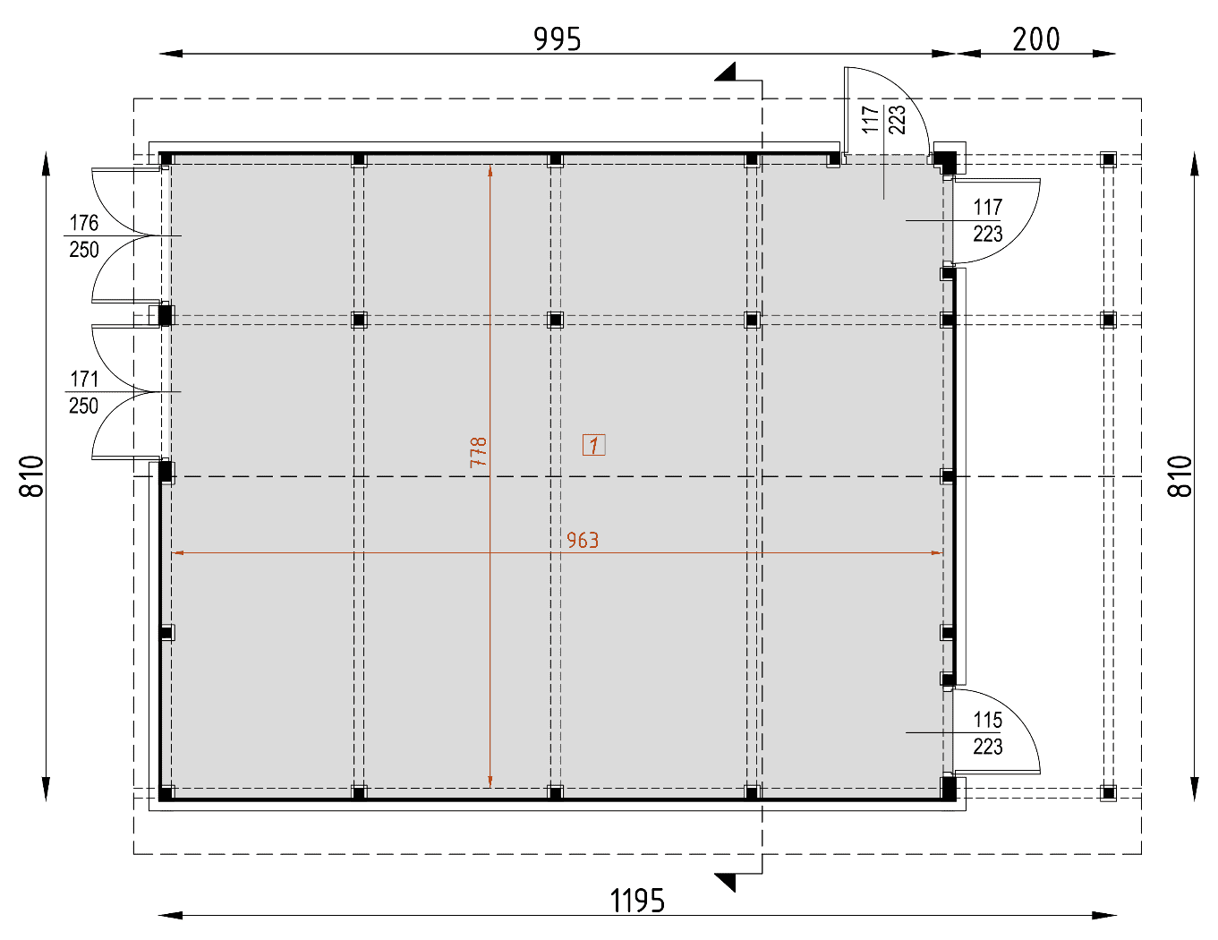 - rzut fundamentów – dokładne rozmieszczenie fundamentów, wymiary ław fundamentowych i głębokość ich posadowienia.