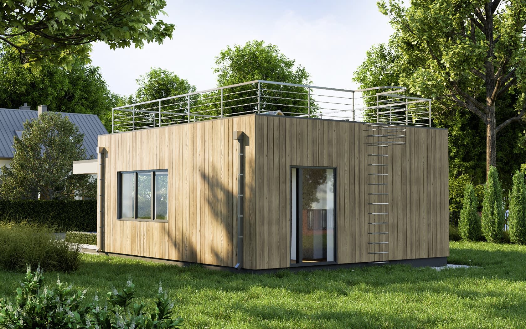 Elewacja: drewno elewacyjne.