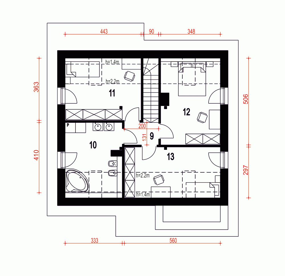 - Szerokość domu10 m