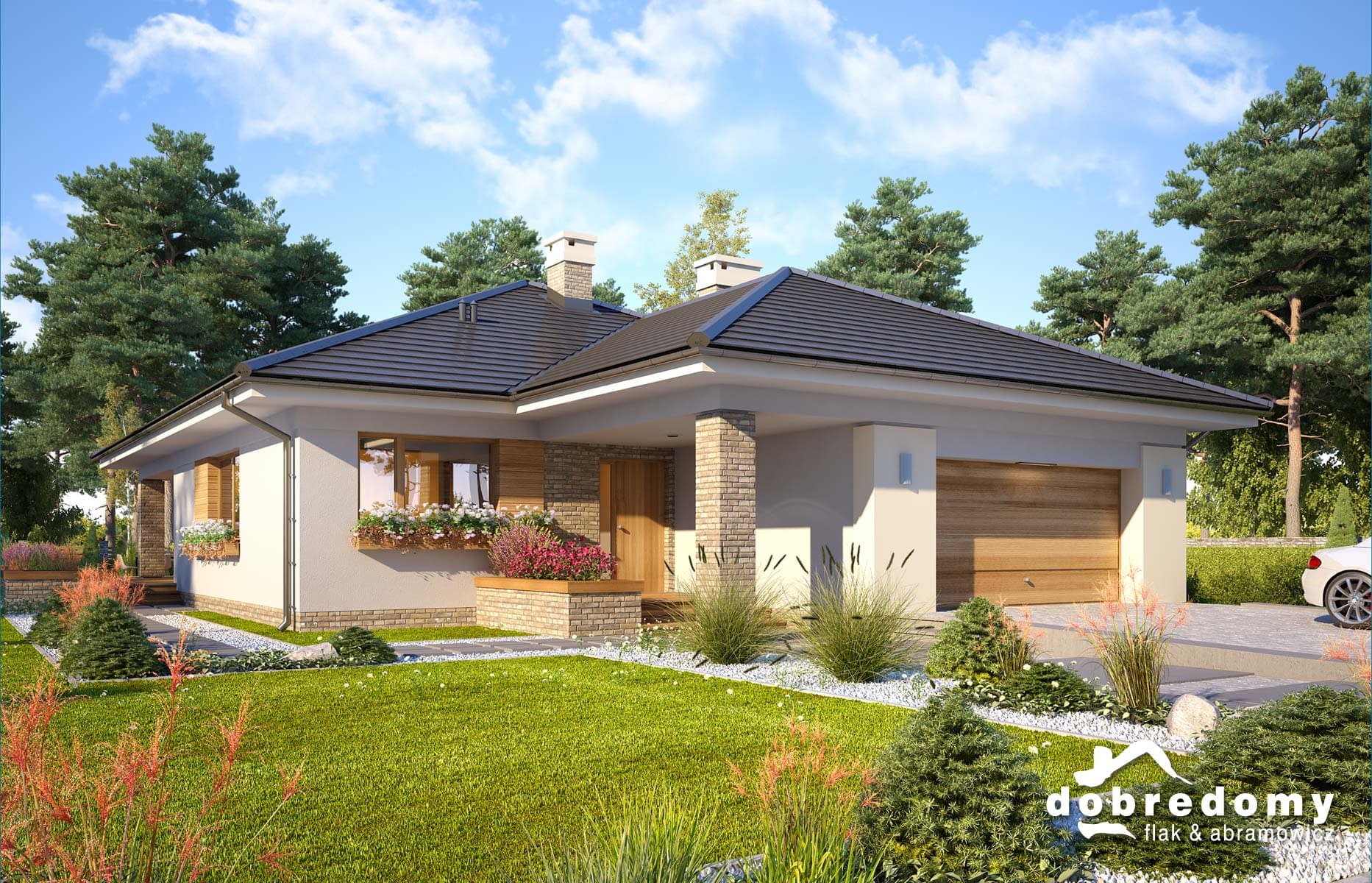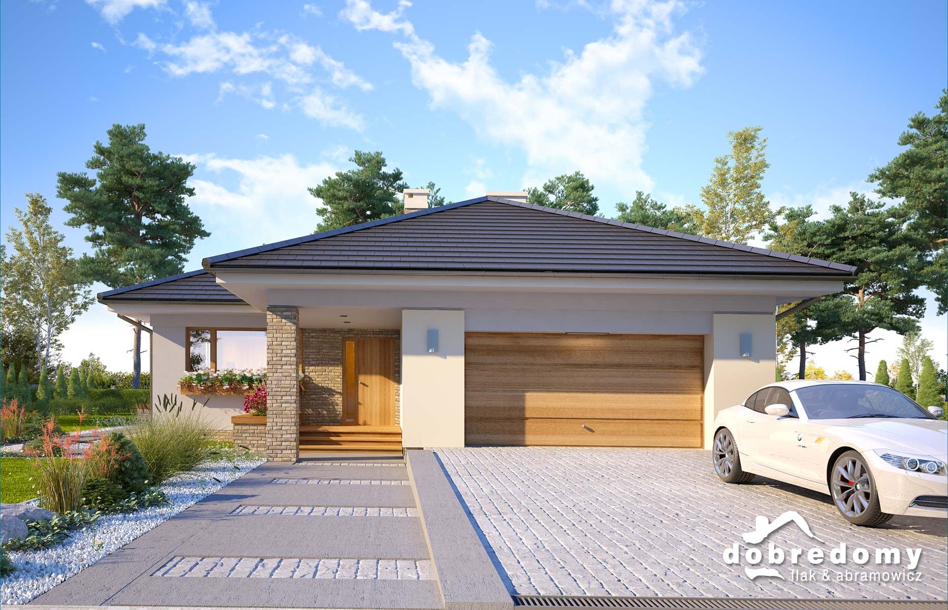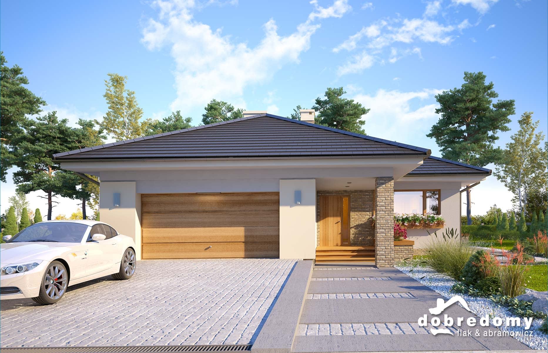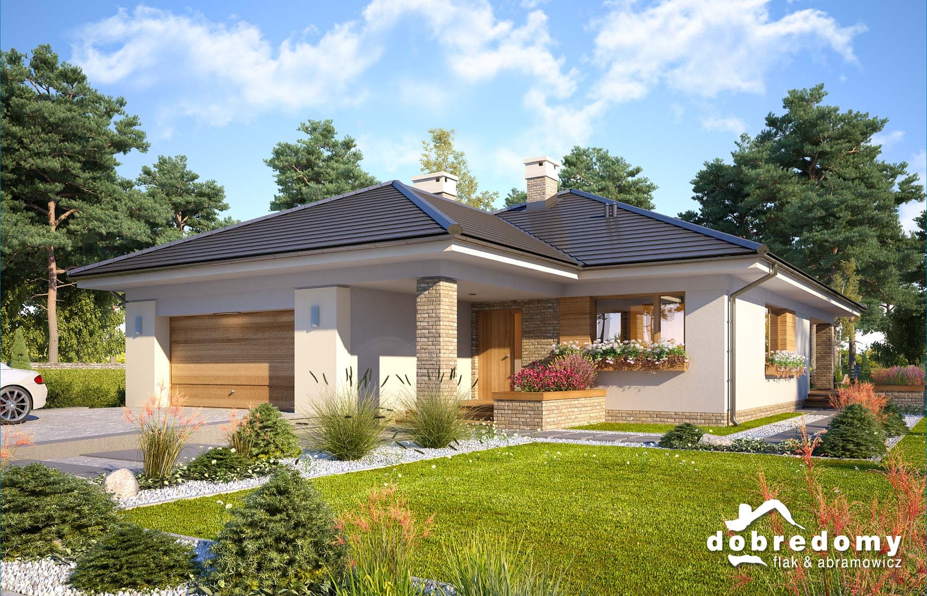 Dom parterowy, niepodpiwniczony, przeznaczony dla 4-5 osobowej rodziny. W części dziennej zlokalizowano otwartą kuchnię połączoną z pokojem dziennym poprzez jadalnię. Sypialnie z ogólnodostępną łazienką i garderobą zaprojektowano w odizolowanej części nocnej. Dodatkowo sypialnia rodziców posiada własną garderobę i łazienkę.