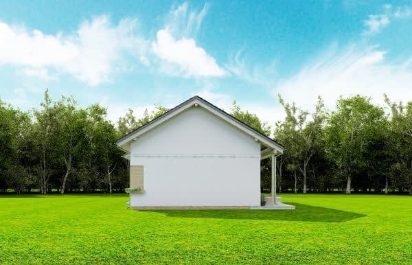 Projekt domu Biedronka 2 jest to wariantowa wersja naszego popularnego niewielkiego domu jednorodzinnego dla trzy-czteroosobowej rodziny, parterowego, przekrytego dwuspadowym łagodnym dachem, ze strychem do adaptacji. Domek ma prostą bryłę i konstrukcję. Jest łatwy w budowie i tani w przyszłej eksploatacji. Dzięki zastosowaniu bardzo dobrego ocieplenia i nowoczesnych instalacji, Biedronka jest budynkiem energooszczędnym. Wygląd zewnętrzny to połączenie nowoczesności z tradycyjną formą. Nowoczesne materiały wykończeniowe i detale architektoniczne łączą się tu z tradycyjną formą parterowego domu na planie prostokąta, z dwuspadowym dachem. Elewacje frontowa i ogrodowa zostały urozmaicone zadaszonymi podcieniami, oraz drewnianymi okładzinami ścian. Oryginalny dach kryty blachą na rąbek można łatwo zastąpić dachówką lub blacho dachówką. Parter domu składa się z części dziennej z salonem, kuchnią i holem, oraz dwóch sypialni z łazienką. Przy przedsionku znajduje się kotłownia gazowa, którą łatwo można zmienić na kotłownię z piecem na paliwo stałe. Strych – poddasze można dowolnie zagospodarować. Mimo niewielkiej powierzchni dom ma przestronne i wygodne wnętrze. Biedronka 2 jest budynkiem całorocznym, może być też wykorzystywana jako dom wakacyjny. Prosta i łatwa konstrukcja pozwoli zaoszczędzić na kosztach budowy. Biedronka to z pewnością propozycja dla rozsądnie myślącego Klienta. Zapraszamy do zapoznania się z pełną ofertą pracowni MG Projekt: projekt domu Biedronka.