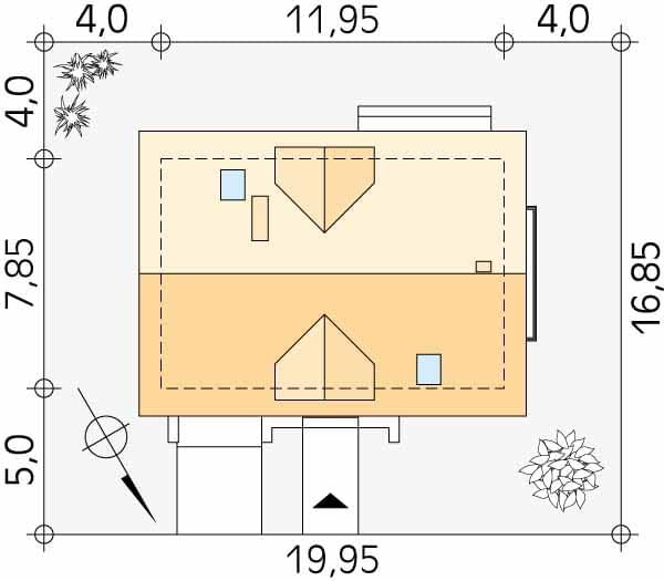 - Minimalne wymiary działki16.85 x 19.95m