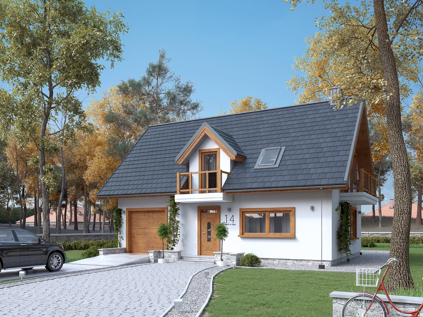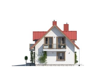 Mały dom jednorodzinny z użytkowym poddaszem i garażem w bryle budynku. Idealny dla niewielkiej rodziny.Konstrukcja