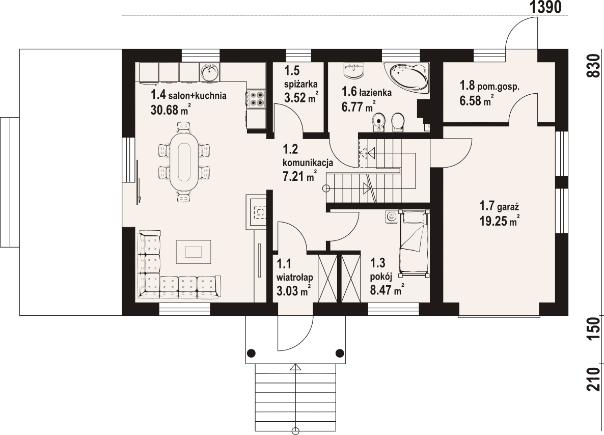 - 1.4 - salon+kuchnia30.68 m²