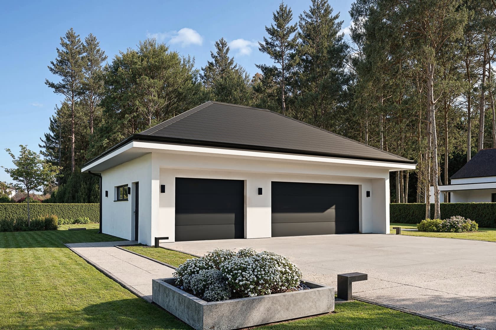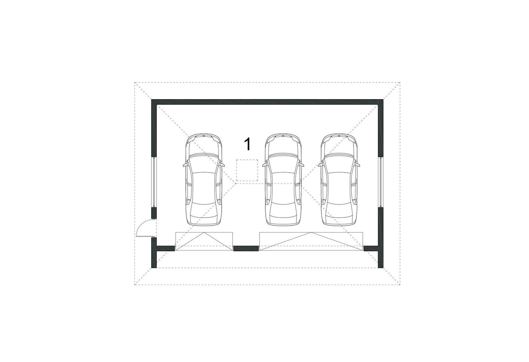 Nowoczesny parterowy garaż z trzema stanowiskami postojowymi. W zamierzeniu projekt nawiązuje swoją stylistyką do oferowanych przez nas projektów domów, poprzez charakterystyczną ramę w części frontowej.