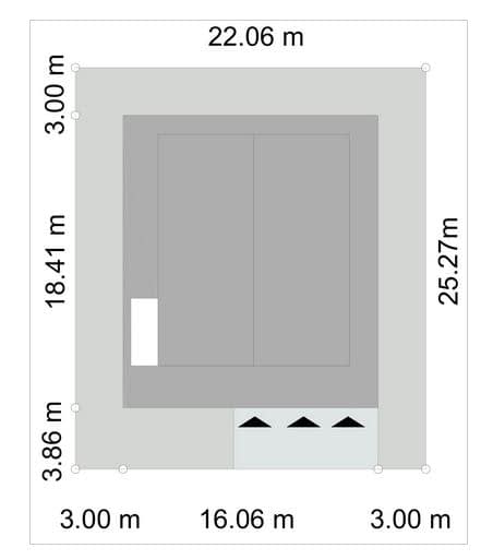 Projekt domu BK-66 to nowoczesny parterowy dom z dachem dwuspadowym. Przemyślany układ funkcjonalny zbliżony wymiarami do kwadratu z charakterystyczną ramą oplatającą dom. Możliwość adaptacji poddasza na cele mieszkalne, z tego względu na parterze przewidziano schody prowadzące na górę.