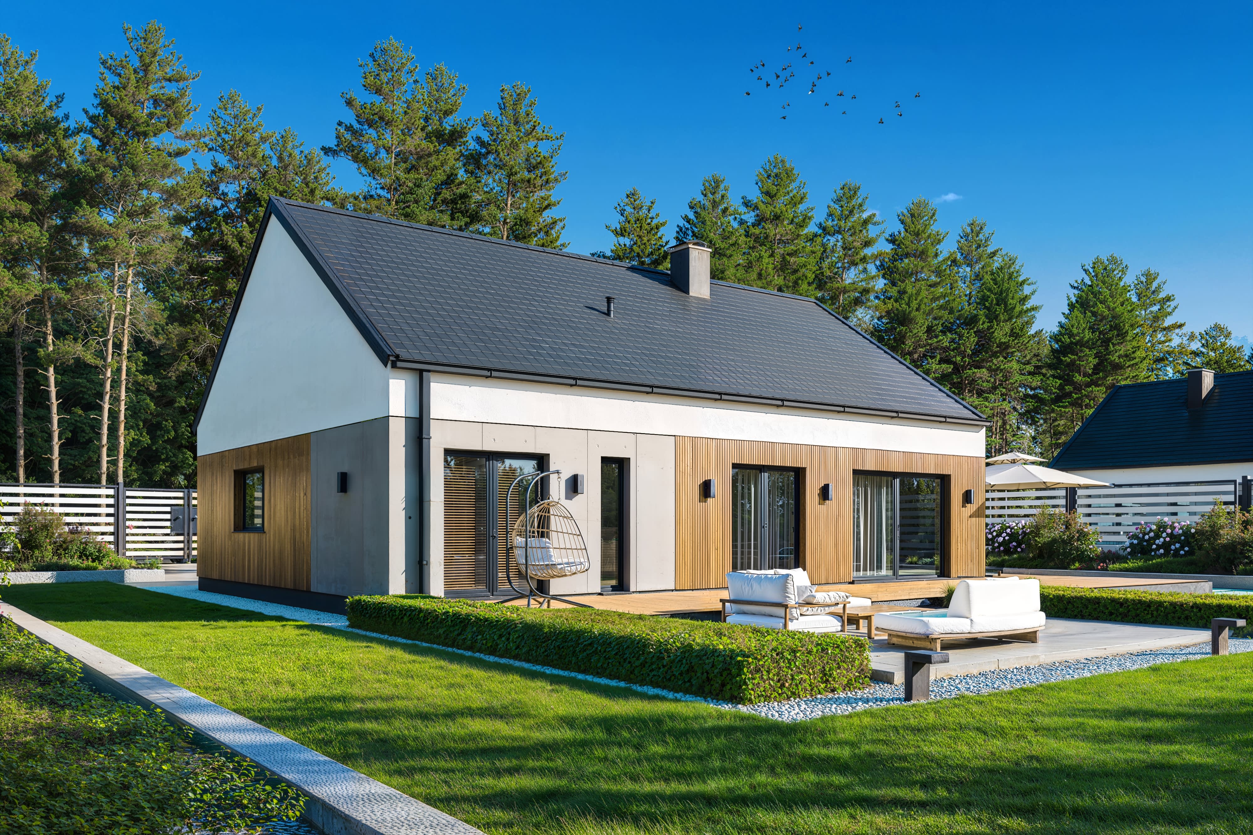 Projekt domu BK-66 to nowoczesny parterowy dom z dachem dwuspadowym.
