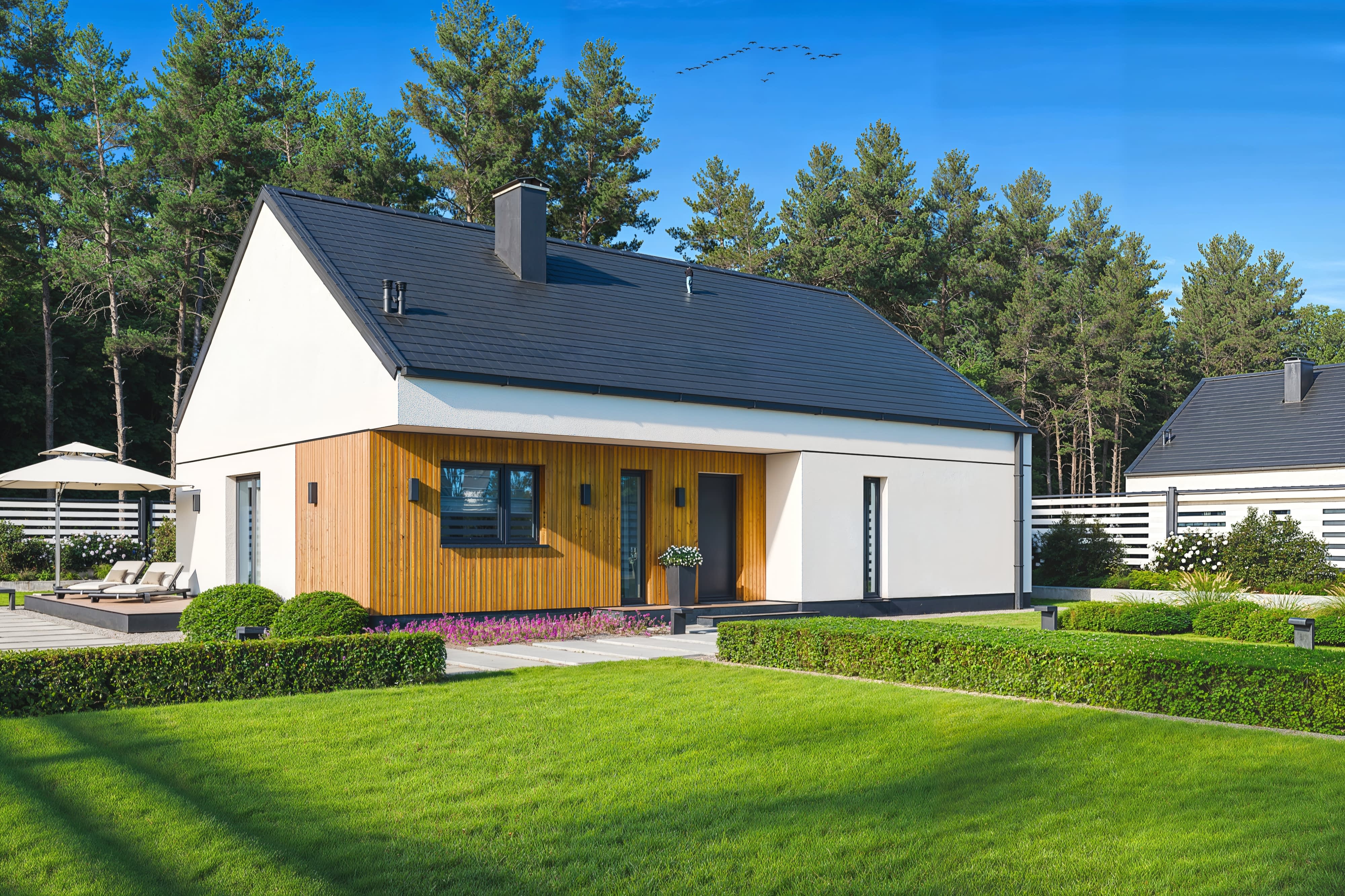 Projekt domu BK-67 to nowoczesny parterowy dom z dachem dwuspadowym.