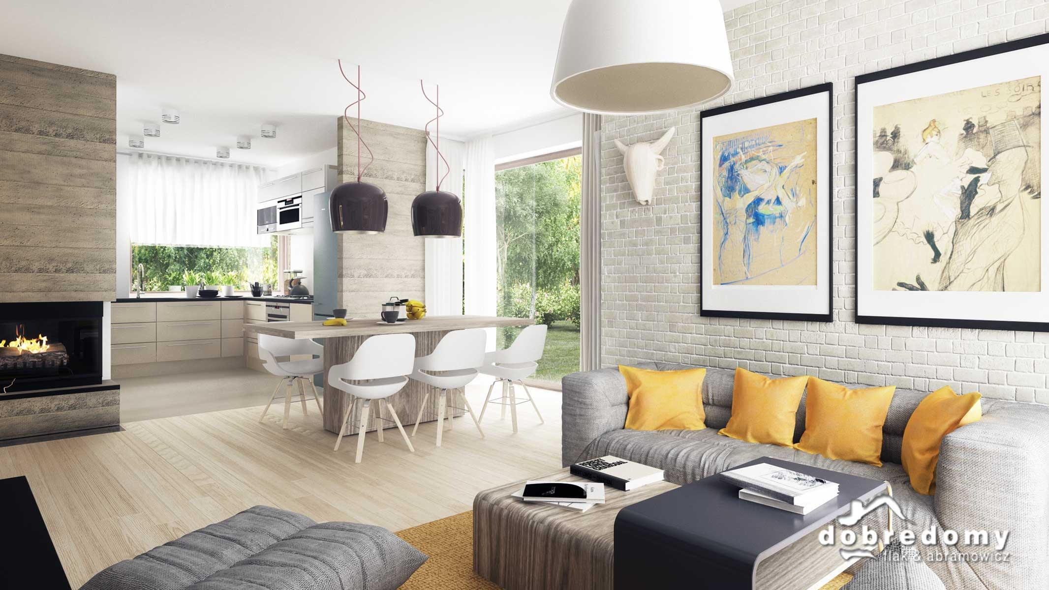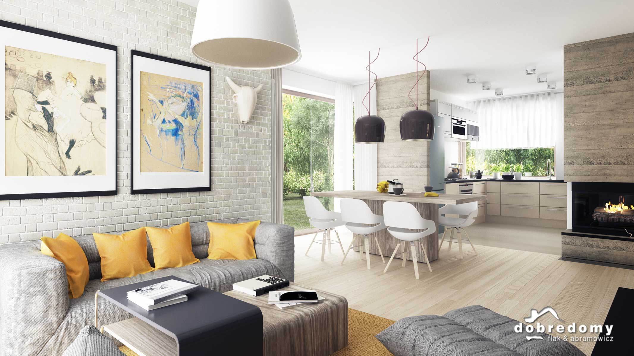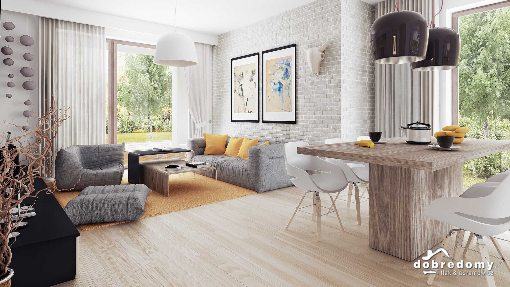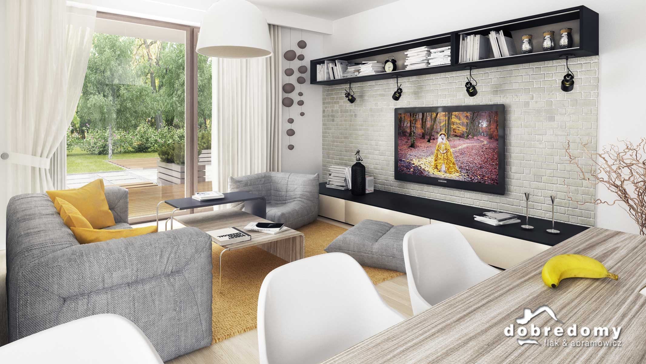 Nowoczesny dom parterowy, przeznaczony dla 4-5-osobowej rodziny. W części ogólnodostępnej zlokalizowano pokój dzienny połączony z jadalnią i kuchnią. Część prywatną tworzą trzy sypialnie oraz łazienka i wc. Pomieszczenie gospodarcze umieszczone tuż przy wejściu dostępne jest również z kuchni.