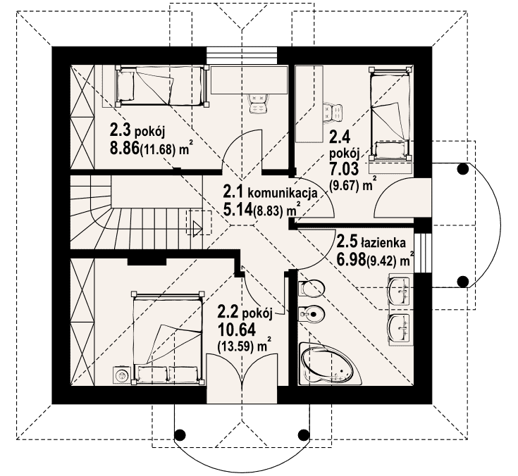 - KondygnacjeParterowy, z poddaszem