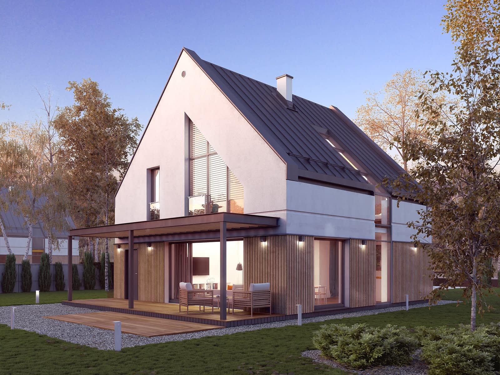 - rzuty poziome poszczególnych kondygnacji (parter, poddasze lub piętro),