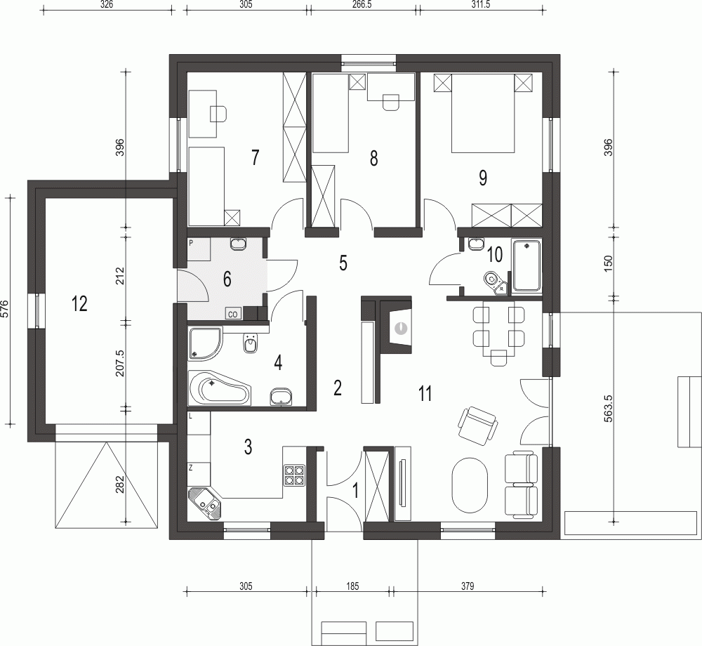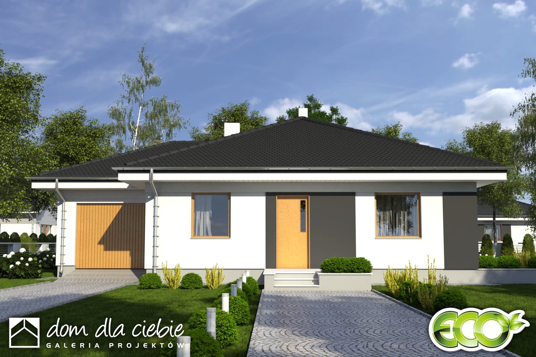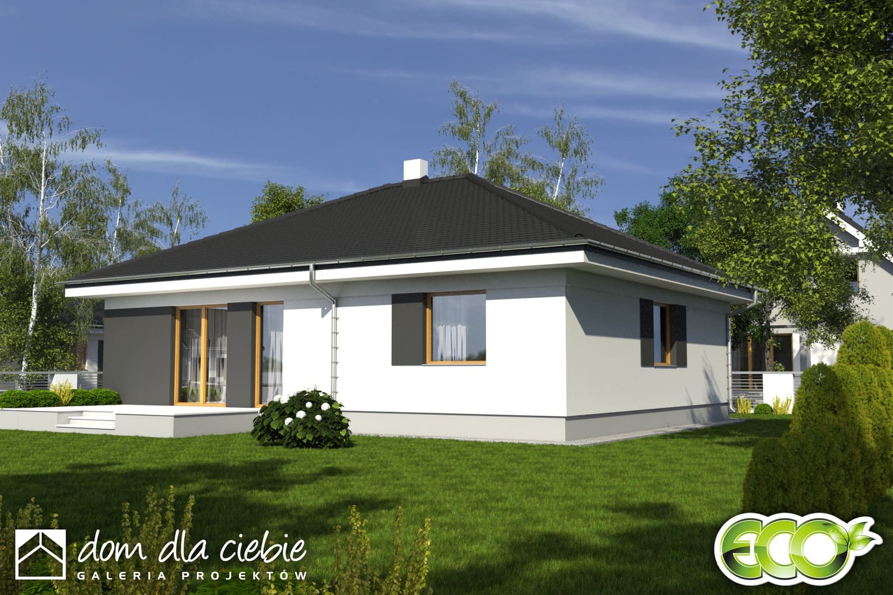 Projekt Bogna to wygodny parterowy dom z garażem dla 4-osobowej rodziny.