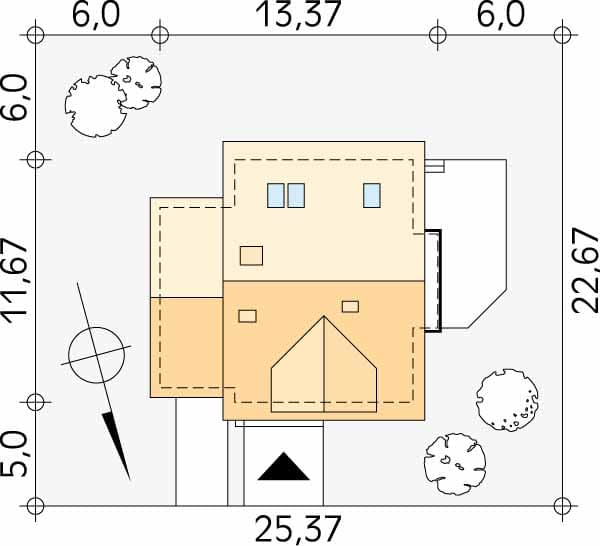 - Minimalne wymiary działki22.67 x 25.37m