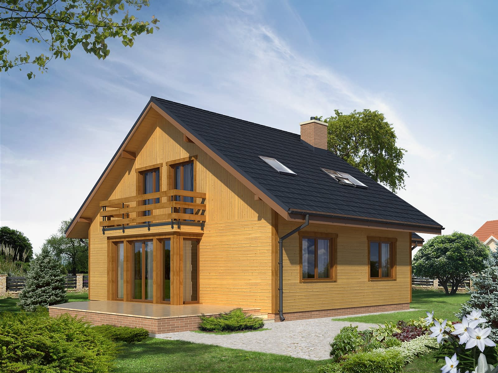 Budynek mieszkalny jednorodzinny w technologii drewnianej szkieletowej. Przeznaczony dla 4-5 osobowej rodziny. Na parterze oprócz części dziennej zaprojektowano dodatkowy pokój przeznaczony na gabinet lub sypialnię.Konstrukcja