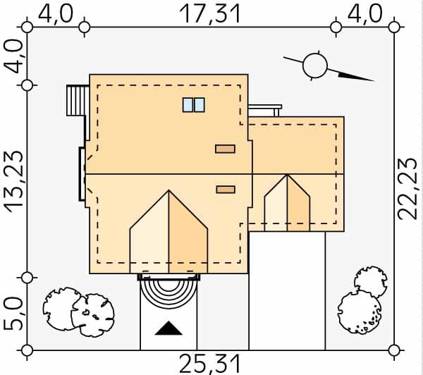 - Minimalne wymiary działki22.23 x 25.31m