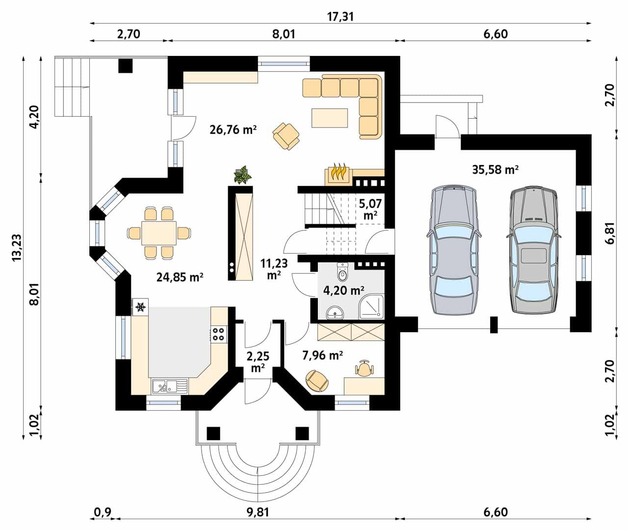 - Szerokość domu17.31 m
