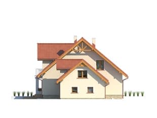 Dom jednorodzinny, wolno stojący, parterowy z użytkowym poddaszem, częściowo podpiwniczony. Na pozór niewielki, kryje wewnątrz aż sześć pokoi. Najmniejszy z nich, na parterze, może służyć jako pracownia. Prosta bryła domu, ekonomiczna w budowie i utrzymaniu.Konstrukcja