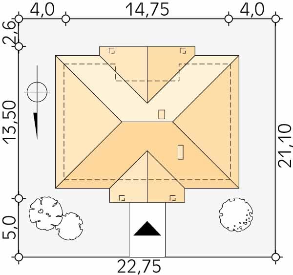 Ściany: 2-warstwowe - pustak ceramiczny + styropian, Stropy: żelbetowe, wylewane, Dach: dachówka ceramiczna CREATON,Rzuty
