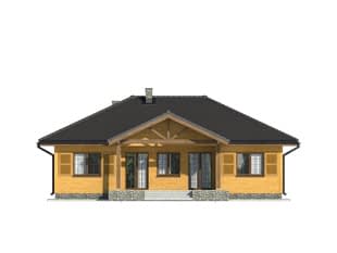Jednorodzinny budynek mieszkalny, parterowy, niepodpiwniczony. Zawiera w sobie optymalny i pełny program dla 4-osobowej rodziny. W budynku istnieje wyraźny podział na część dzienną – salon z jadalnią oraz kuchnia i nocną, w której przewidziano 3 sypialnie i łazienkę. Atutem projektu jest duży zadaszony taras od strony ogrodu, na który prowadzą wyjścia z salonu i dwóch sypialni.Konstrukcja