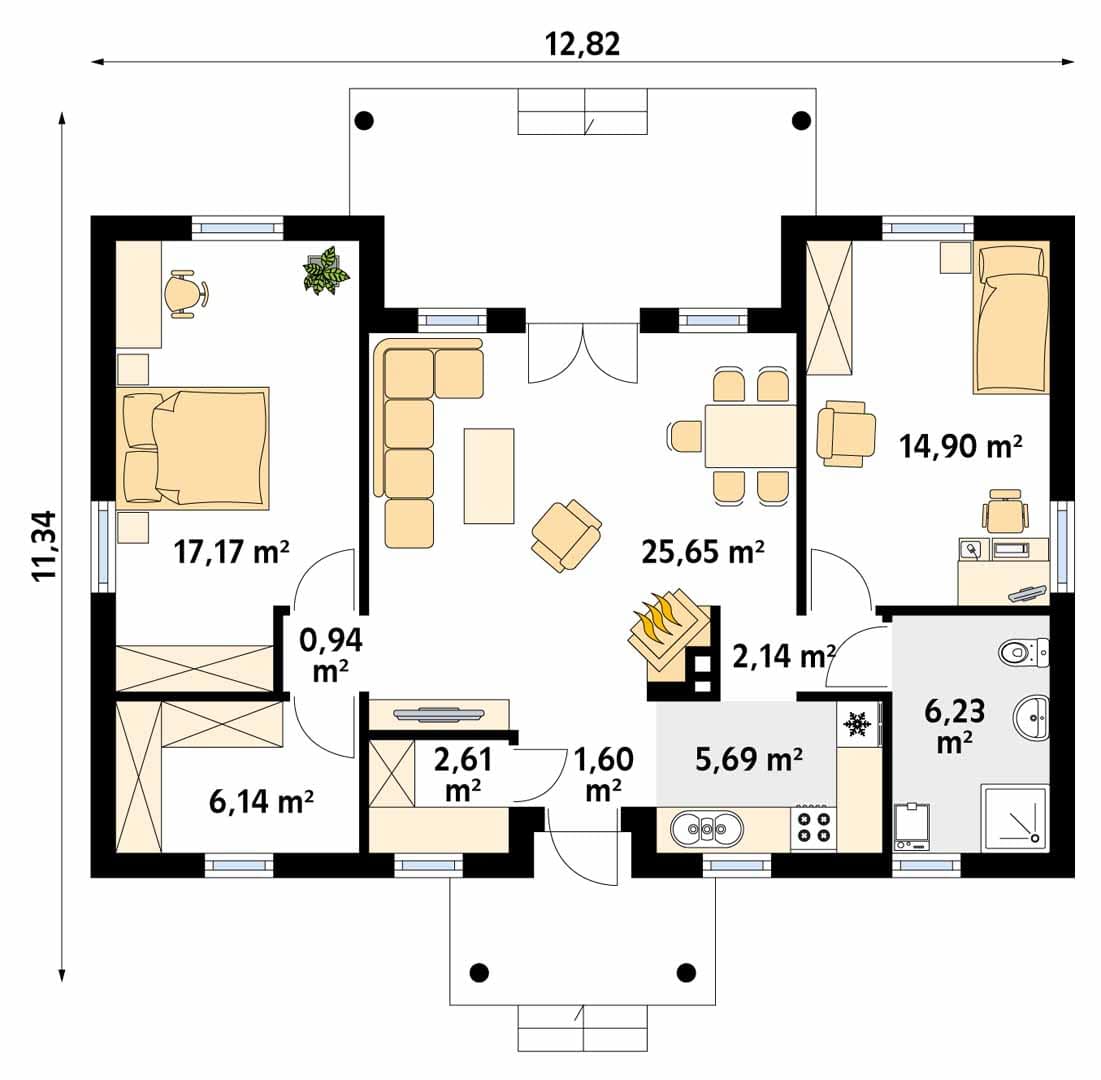 - Szerokość domu12.82 m