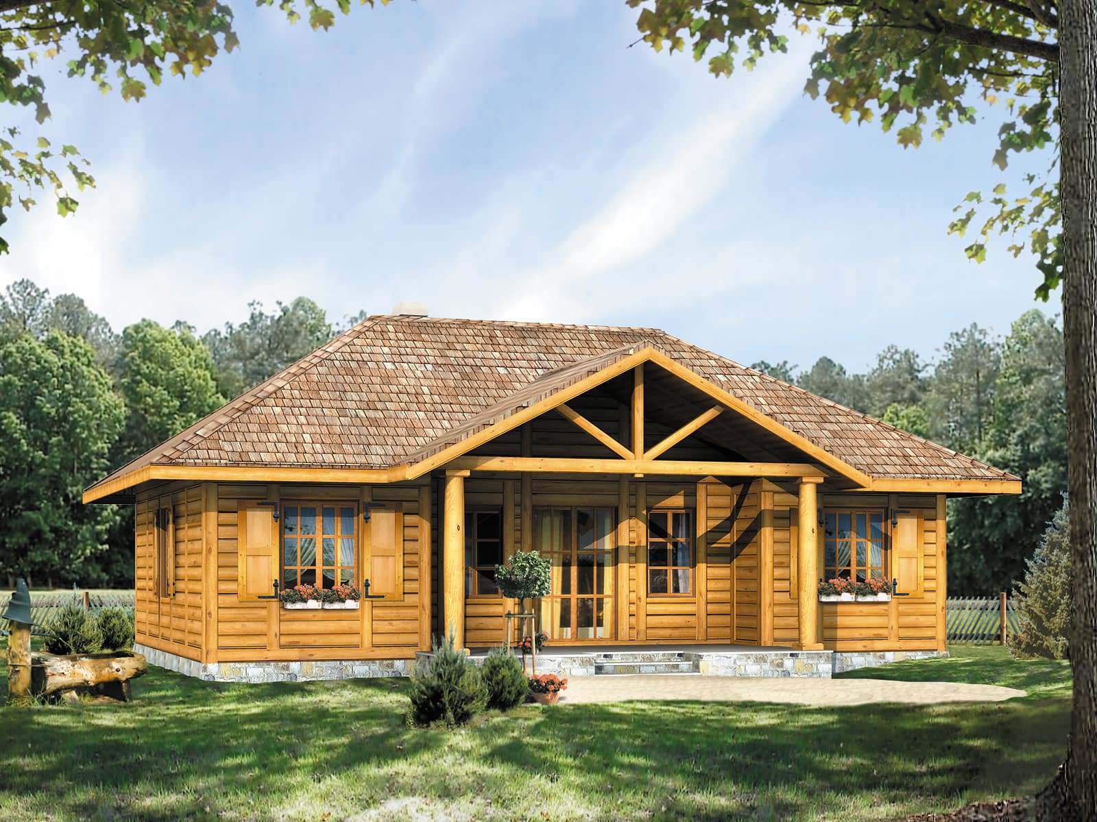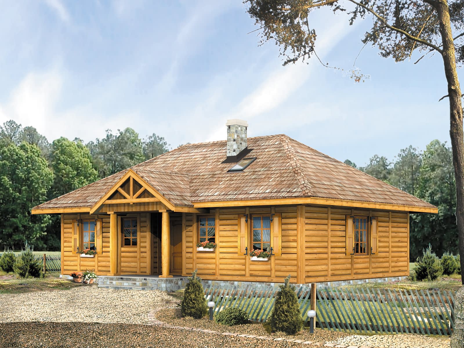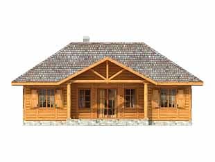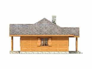 Parterowy dom letniskowy dla 3 – 4 osób. Posiada duży zadaszony taras.Konstrukcja