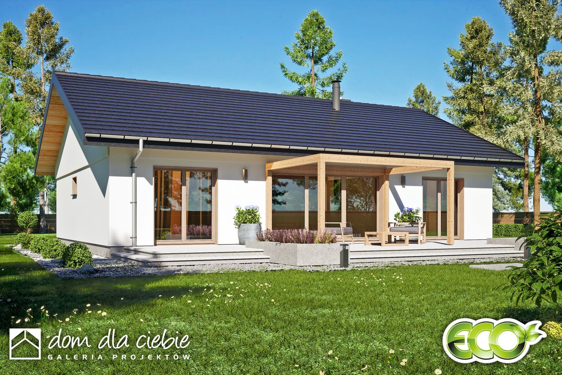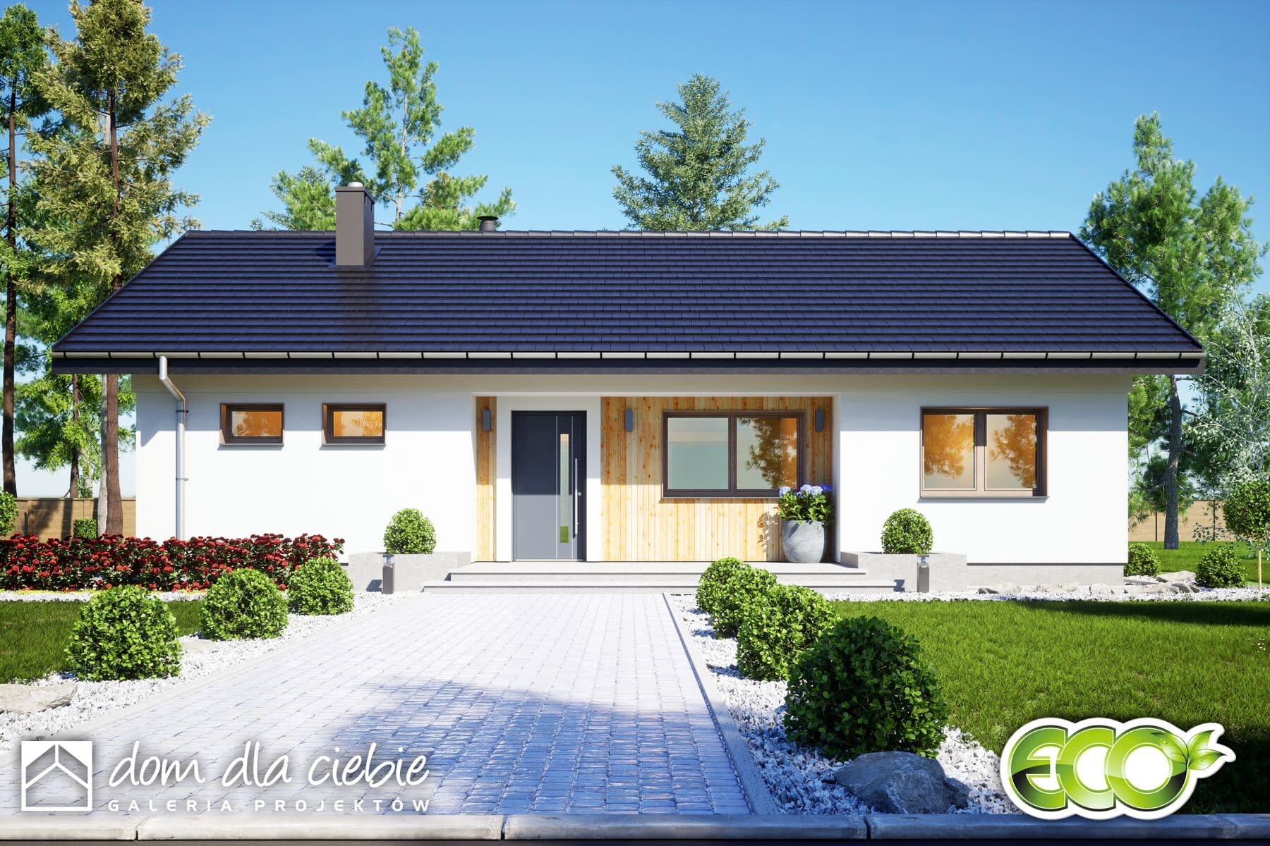 elewacje: tynk strukturalny, okładzina drewniana